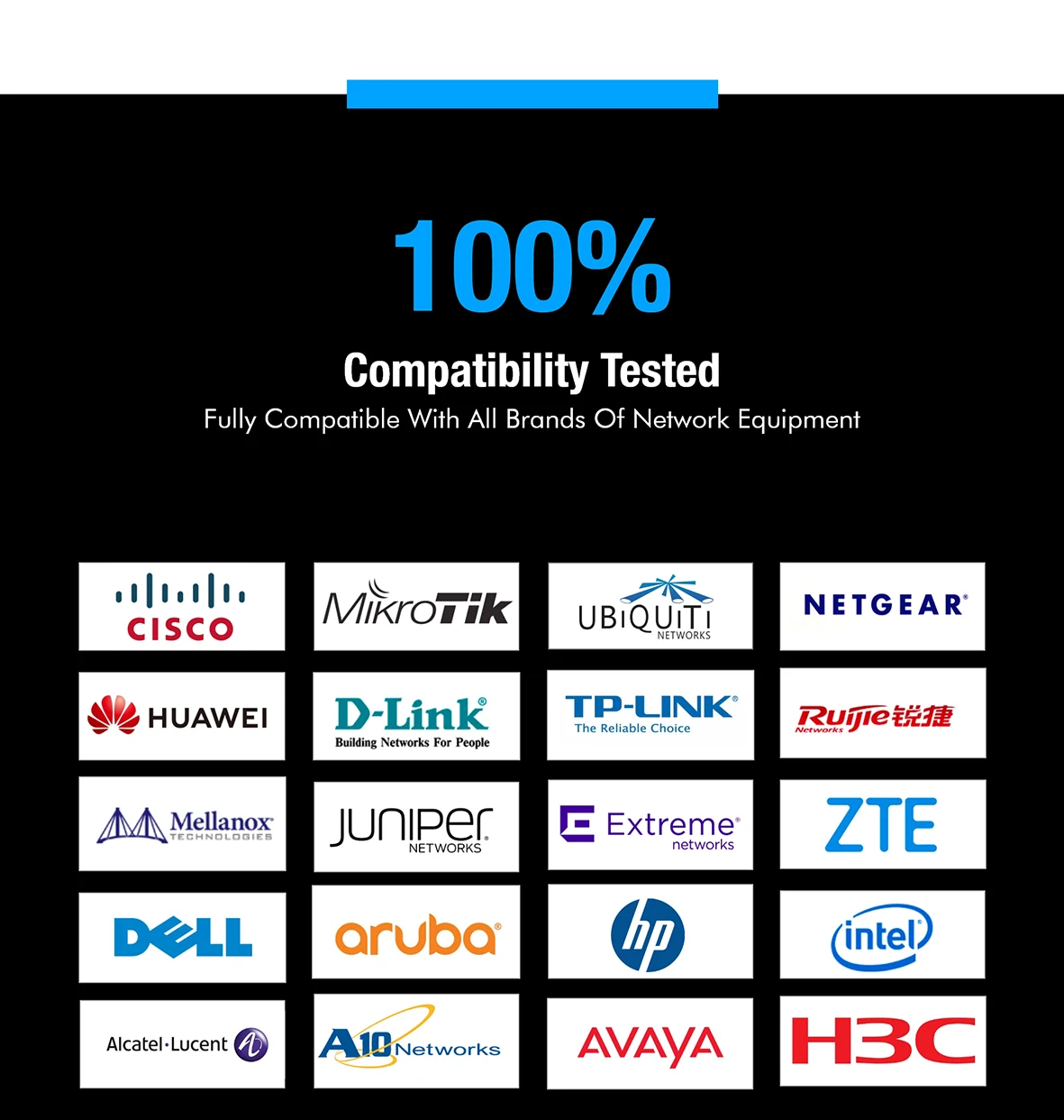 Marca compatible para:Mikrotik/Cisco/Ubiquiti/HuaWei/TP-Link/Juniper/D-Link/Intel....