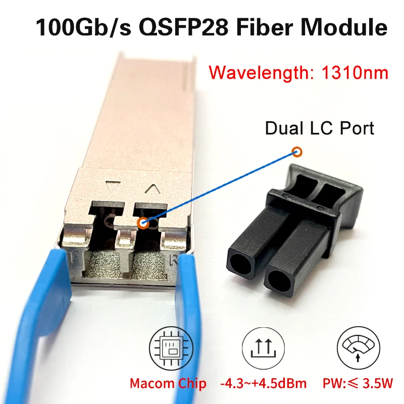 Comprar Módulo transceptor QSFP28 100G LR4, 1310nm, 2km,10km, Dual LC, QSFP, óptico para Huawei/Mikrotik/Juniper/interruptor de fibra Intel