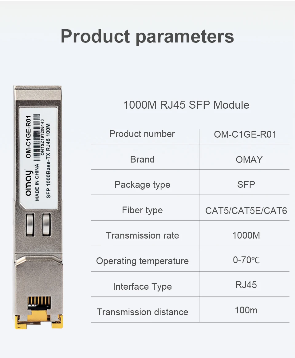 Módulo transceptor SFP de cobre RJ45 de 1,25G 1000Base-Tx Ethernet Gpon Olt fibra óptica FTTH Compatible con con interruptor Cisco/Mikrotik