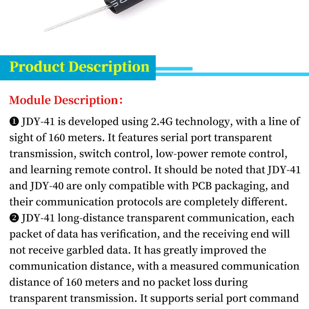 Módulo de transmisión transparente serie inalámbrica JDY-41, interruptor de control remoto, transceptor de módulo 2,4G