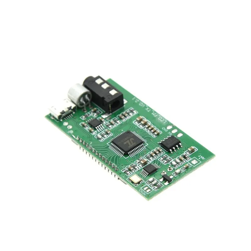 If you need the LINE (line input) channel of this module as the sound source, just plug one end of the audio cable into the 3.5mm audio jack of this module and the other end into your audio device (such as the phone headphone jack). Automatically switch to the LINE channel as the source for FM transmission. The nearby FM radio can be heard from the mobile terminal as long as it is adjusted to match the transmission frequency of this module.