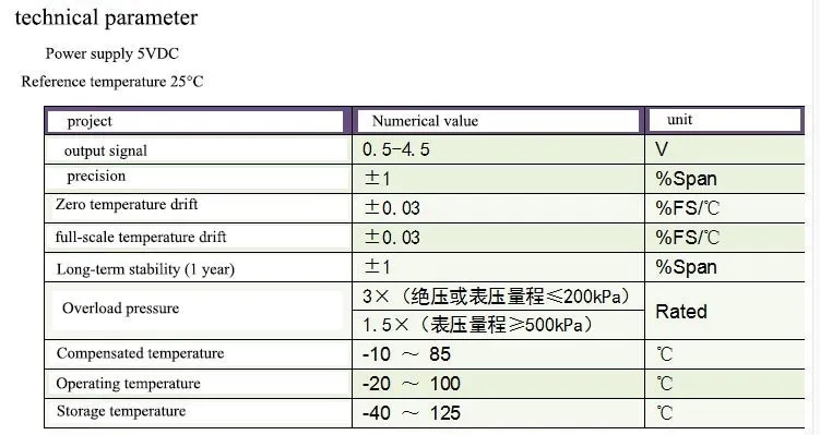 Temperatura y no linealidad, por lo que el Módulo sensor de presión XGZP6848 satisface al prefecto