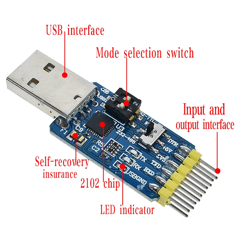 CP2102 su controlador de función USB2.0 de velocidad completa incorporado y altamente integrado, transceptor USB, oscilador de cristal, EEPROM y bus de datos en serie asíncrono (UART), para admitir una señal de módem con todas las funciones sin ningún dispositivo USB externo.Similar a otros trabajos CP2102 USB-UART circuito de conmutación mediante el controlador en la expansión del puerto COM virtual del puerto USB de la PC para lograr el propósito.