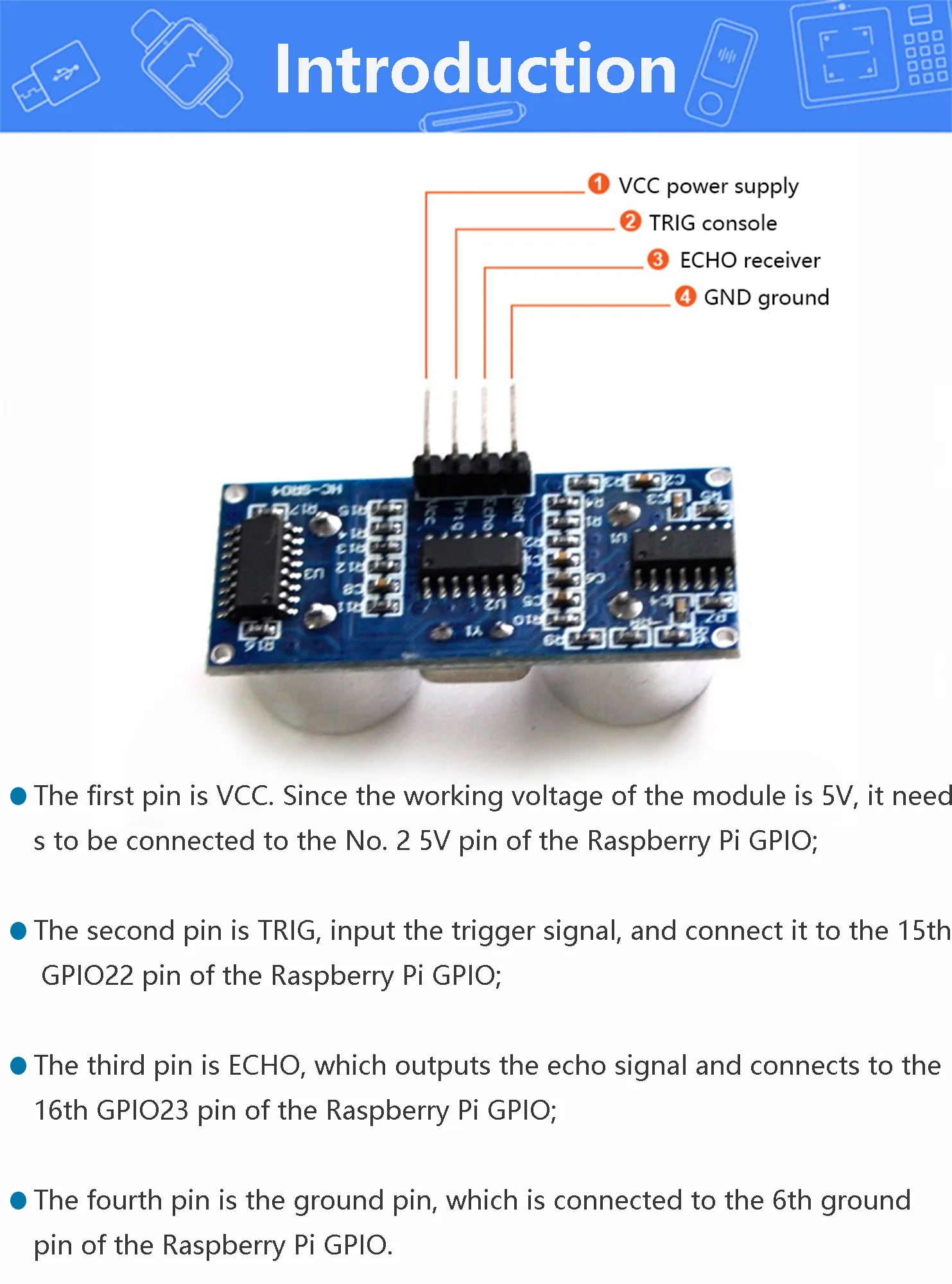 Módulo ultrasónico HC-SR04, módulo de alcance, Sensor ultrasónico, microcontrolador, Sensor DV5V, compatible con Raspberry Pi 3/4