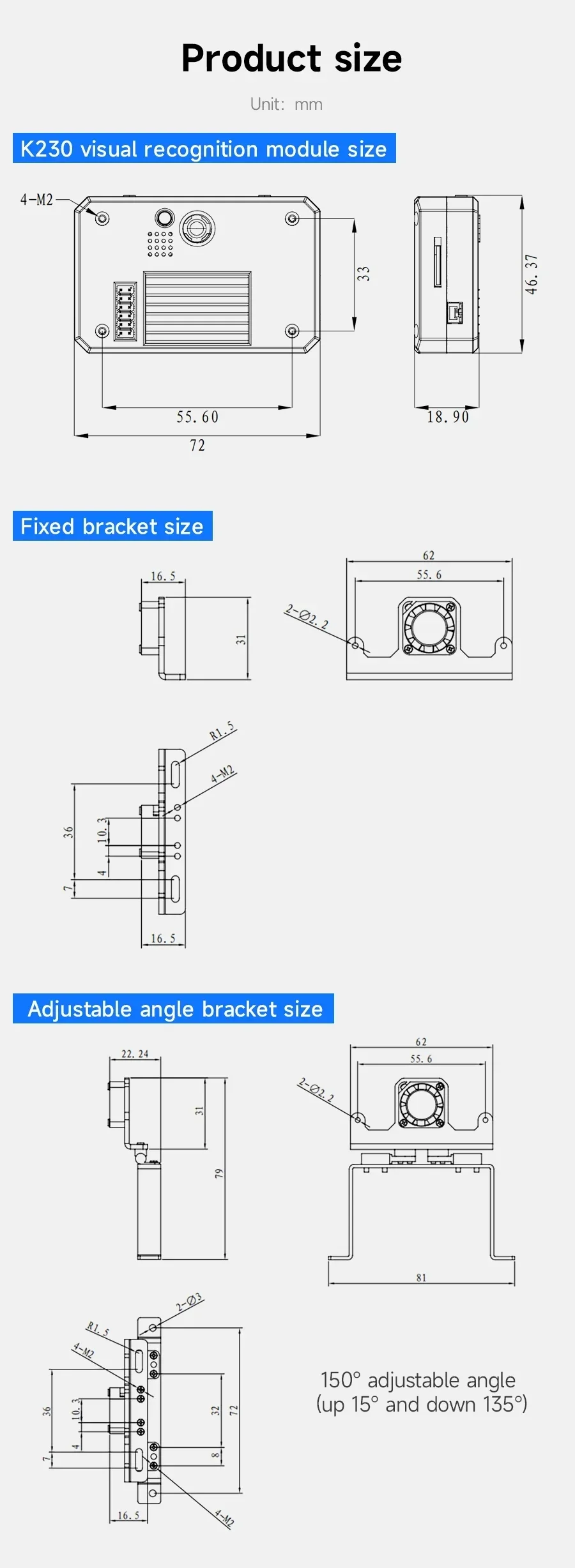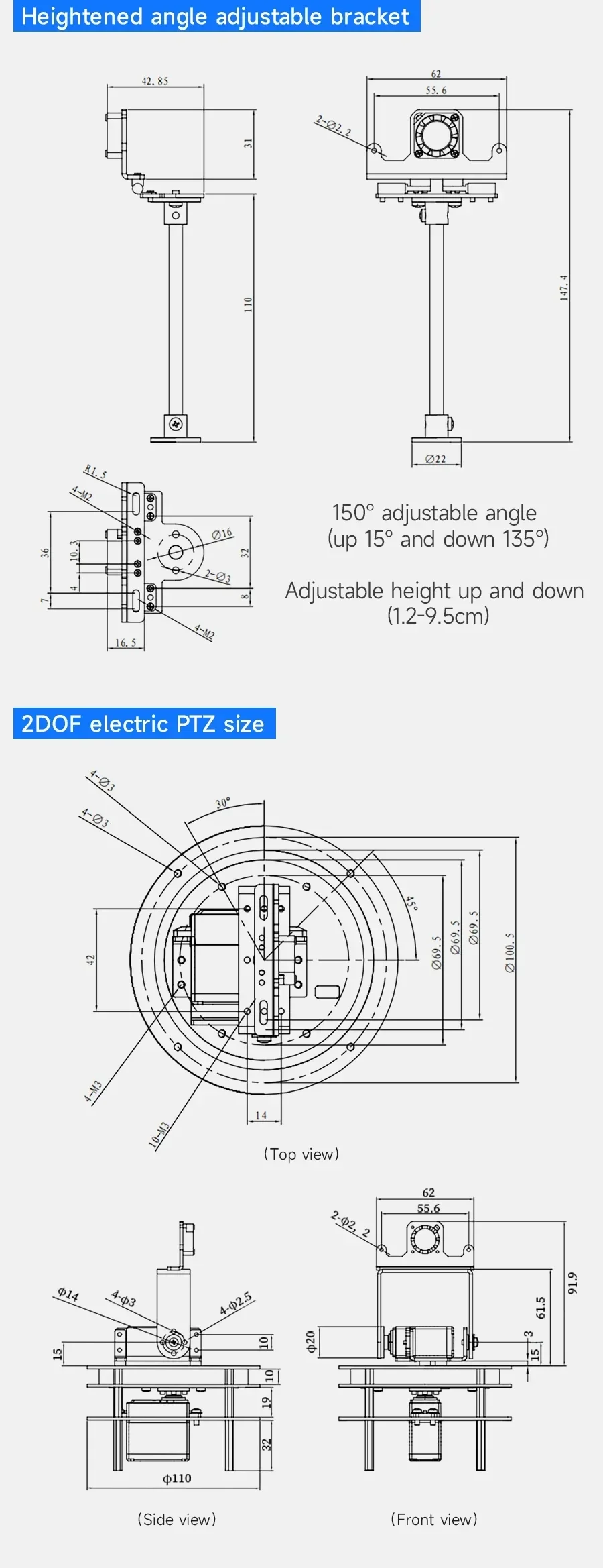 5. Hay disponibles tres soportes de altura diferentes y PTZ eléctrico 2DOF, los usuarios pueden fijar el módulo en algunos robots o automóviles inteligentes.