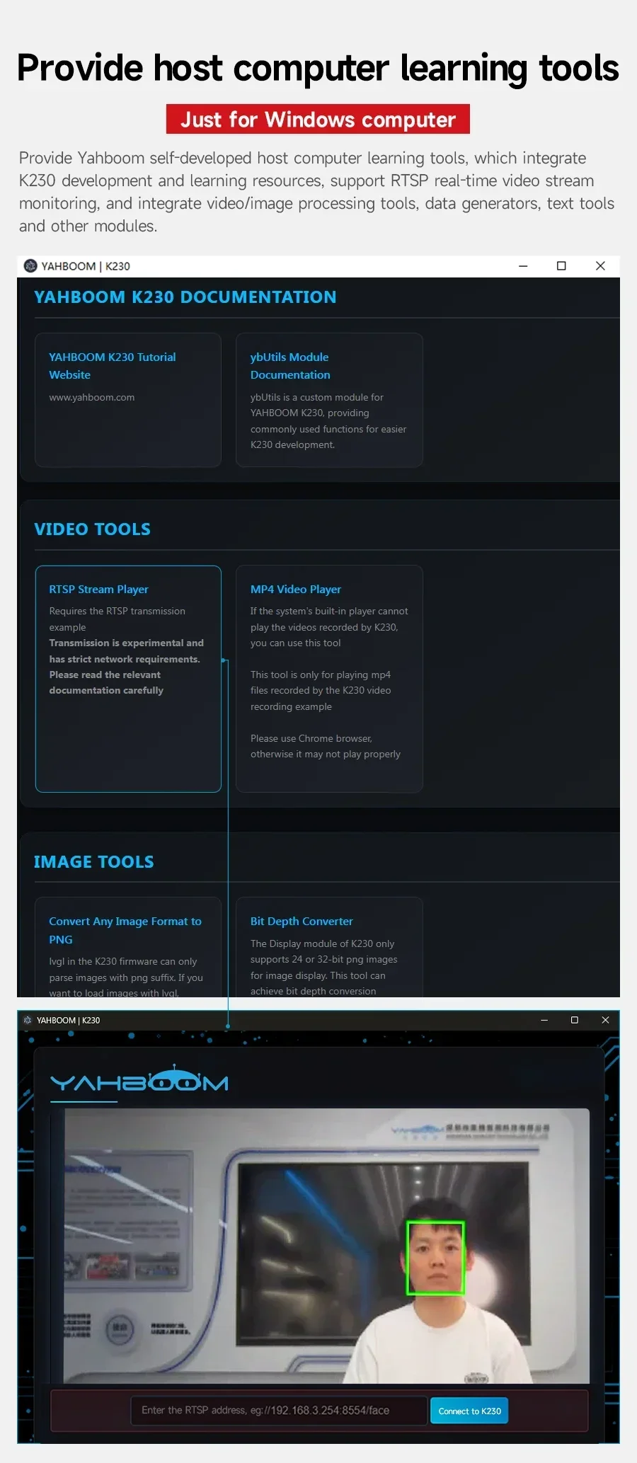 4. Proporcione software de computadora host de versión en Windows, admita monitoreo de flujo de video RTSP en tiempo real e integre herramientas de procesamiento de video/imagen, generador de datos, herramientas de texto y otros contenidos.