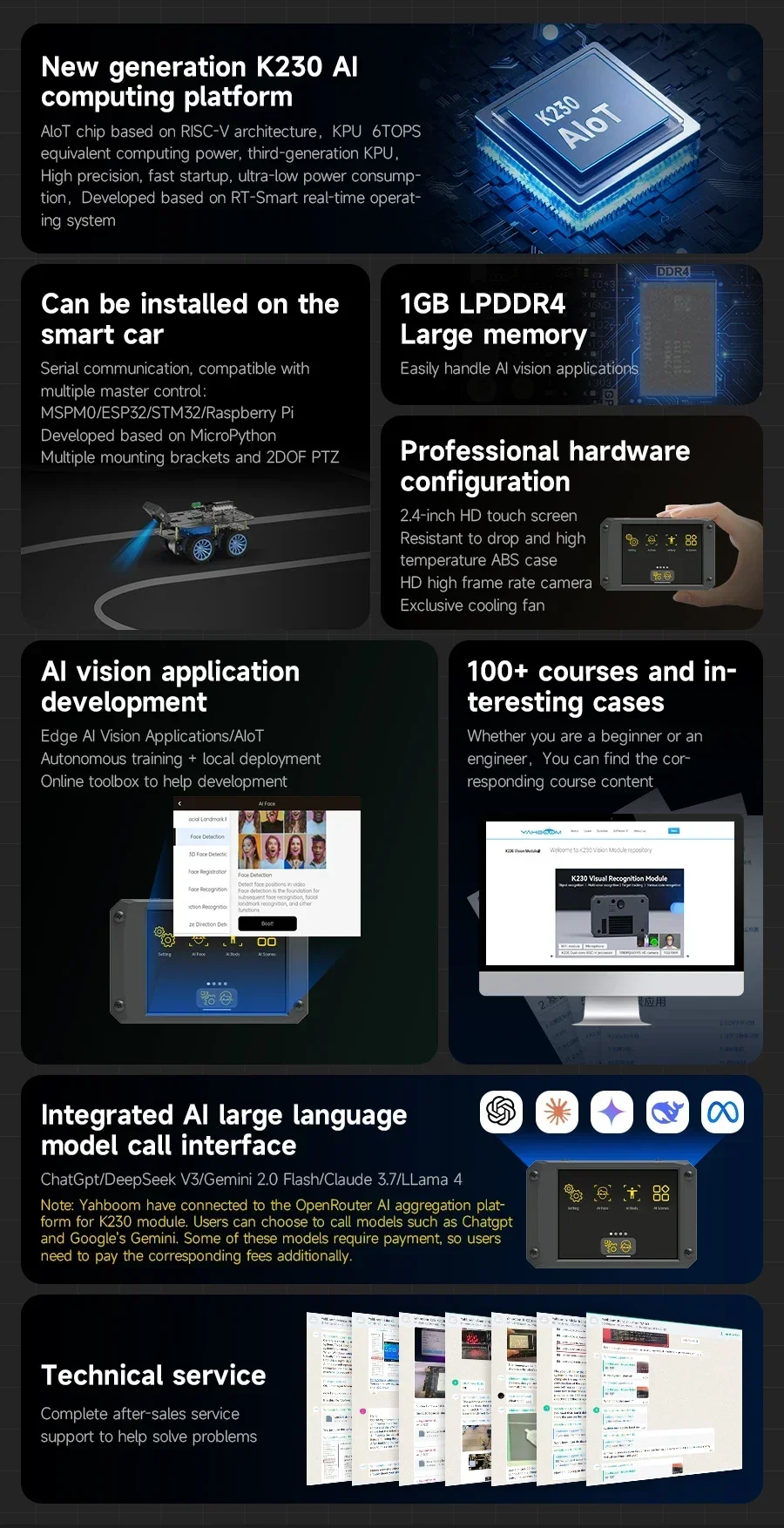 Módulo de visión Yahboom K230 AI con cámara de 2MP y pantalla táctil HD de 2,4 pulgadas que adopta el chip Kendryte K230 para kit de coche Robot DIY