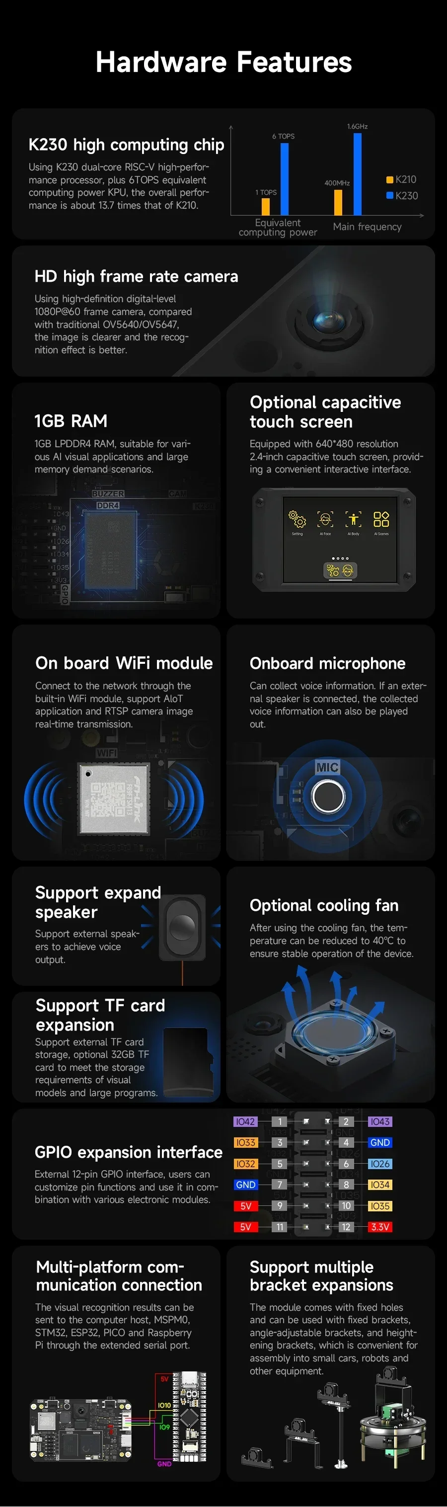 2. Adoptando el chip Kendryte K230, 1 GB RAN, la potencia informática equivalente puede alcanzar 6 TOPS.