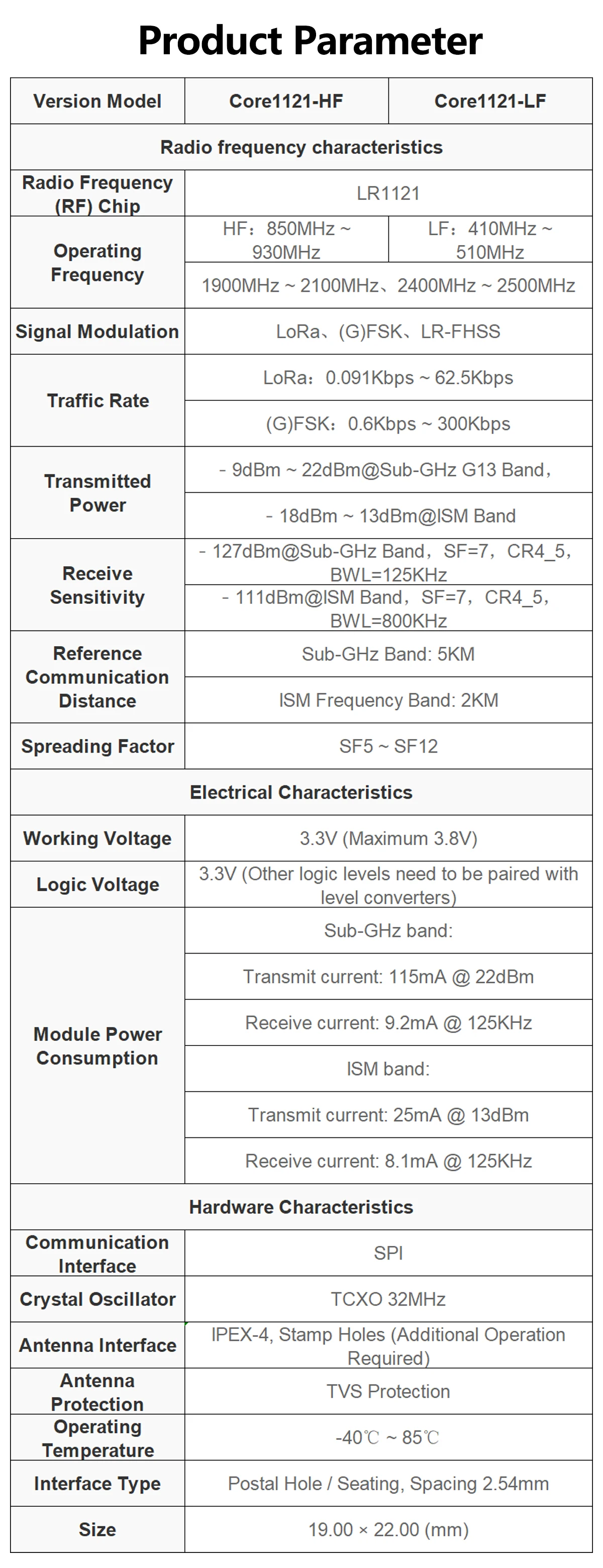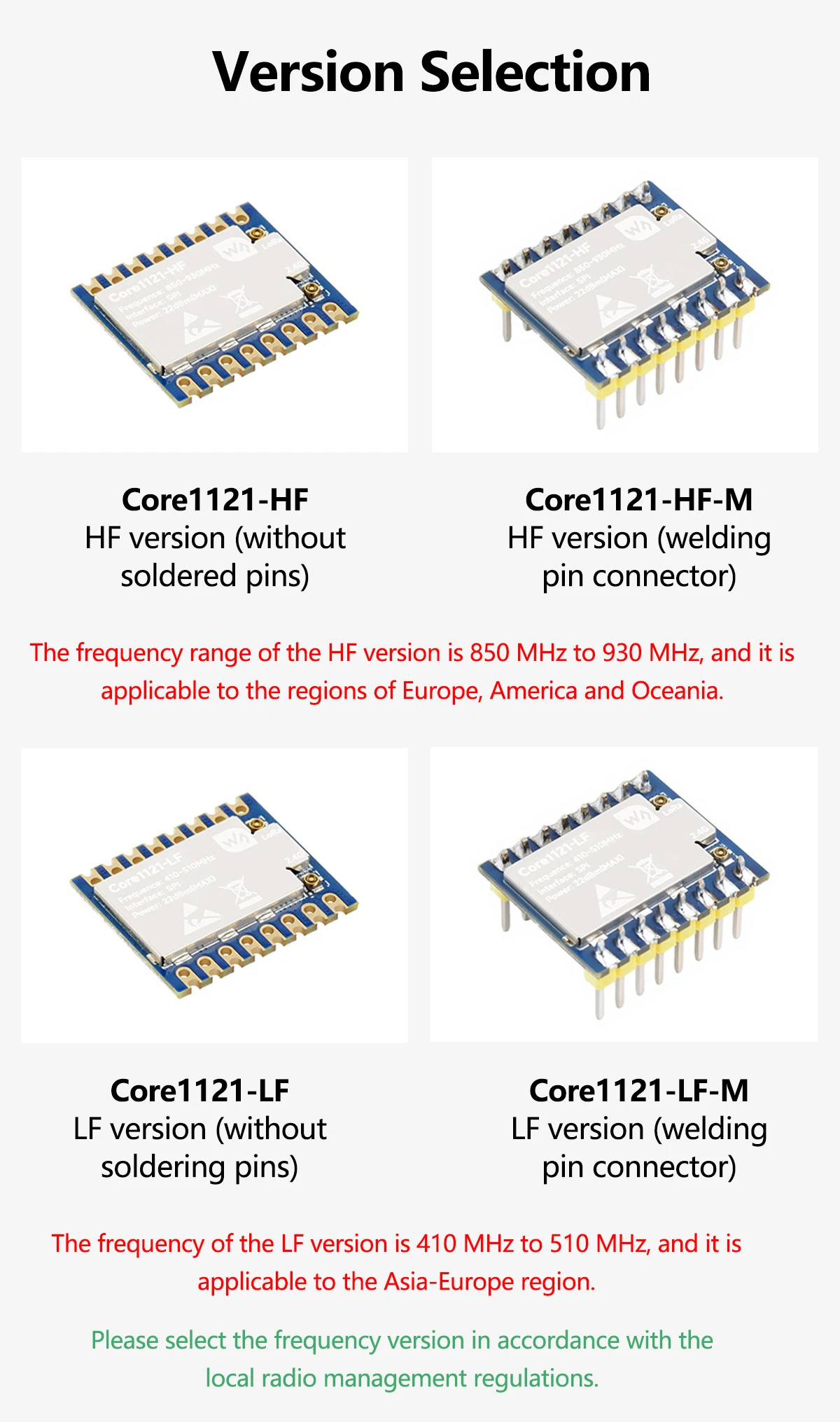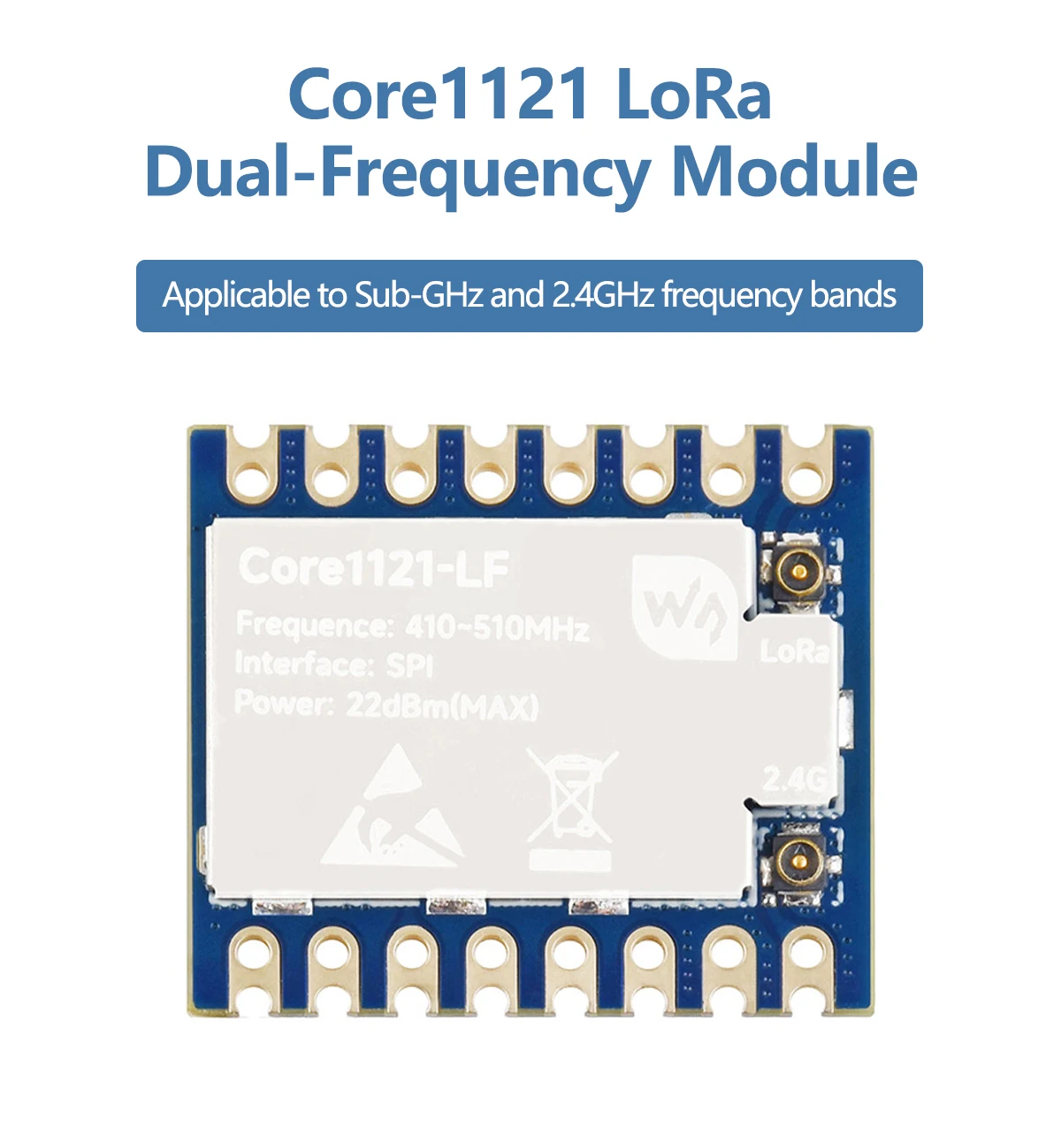 Comprar Módulo Waveshare Core1121 Core1121-HF/Core1121-LF LoRa Módulo de doble frecuencia Transceptor LoRa LR1121 para subGHz y 2,4 GHz