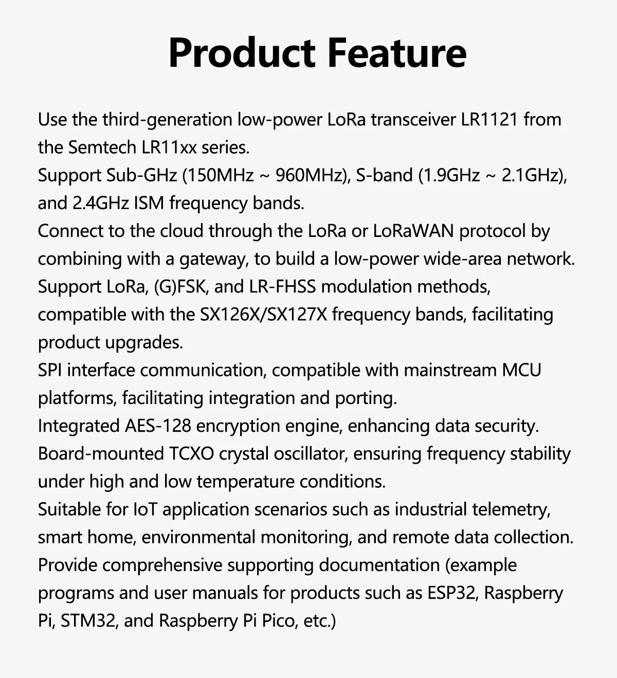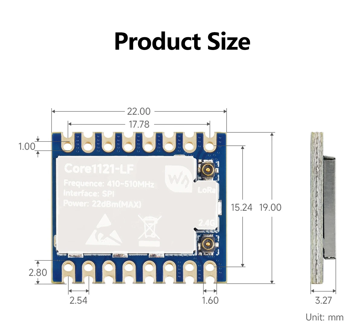 Módulo Waveshare Core1121 Core1121-HF/Core1121-LF Módulo de doble frecuencia LoRa Transceptor LoRa LR1121 para subgHz y 2,4GHz