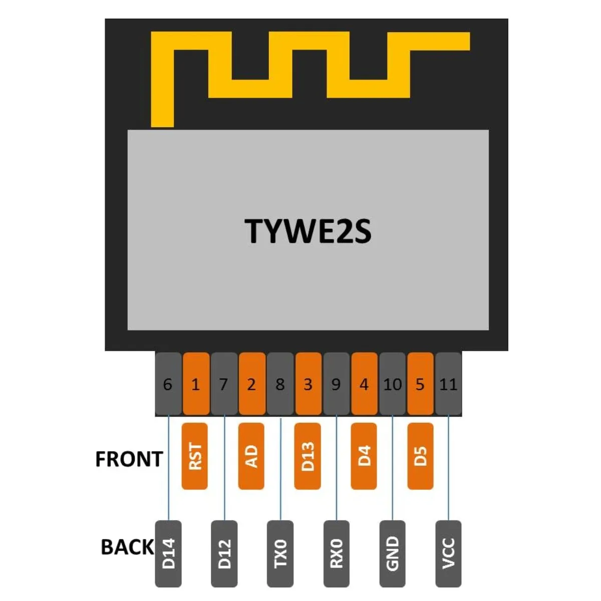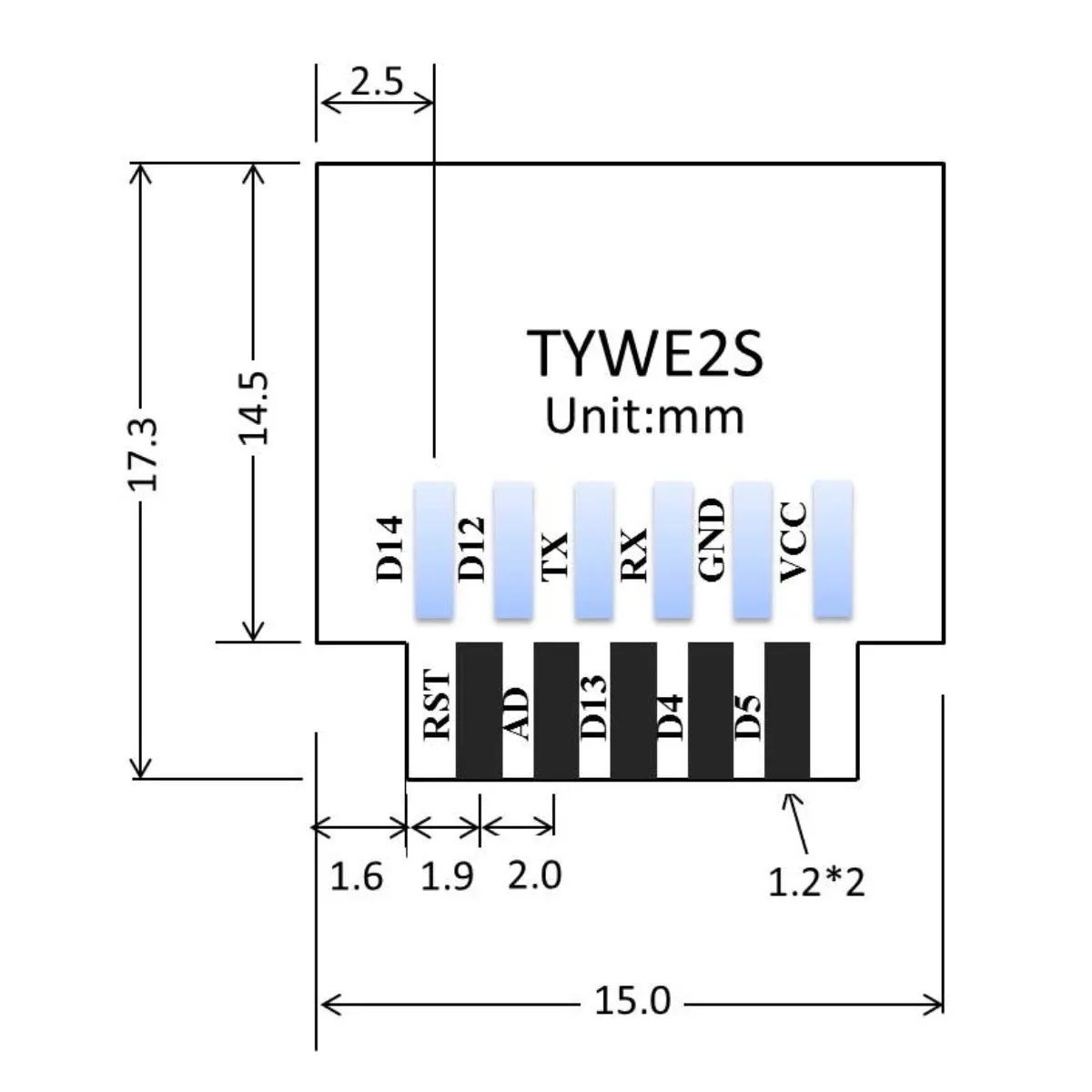 TYWE2S (ESP-02S) es un módulo WiFi de tamaño pequeño y bajo costo, el módulo está empaquetado con dedos dorados, lo cual es conveniente para productos de soldadura enchufables.El chip del módulo es ESP8285, su memoria incorporada es de 16 Mbit, ESP8285 utiliza flash incorporado, que tiene un mejor rendimiento antiestático que ESP8266.
