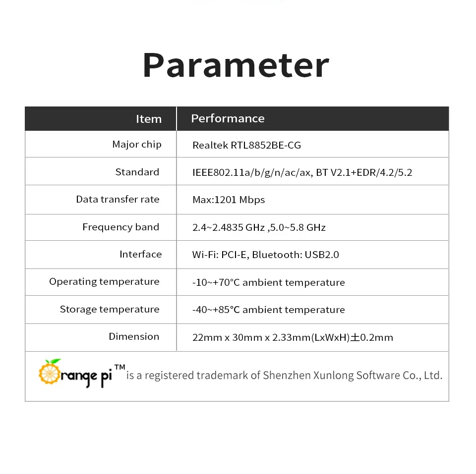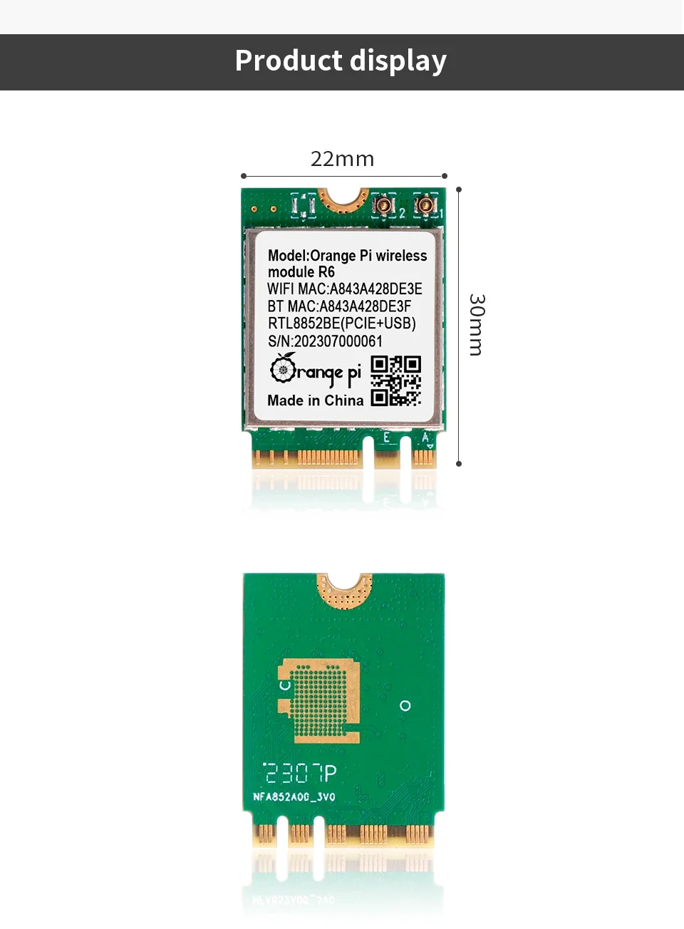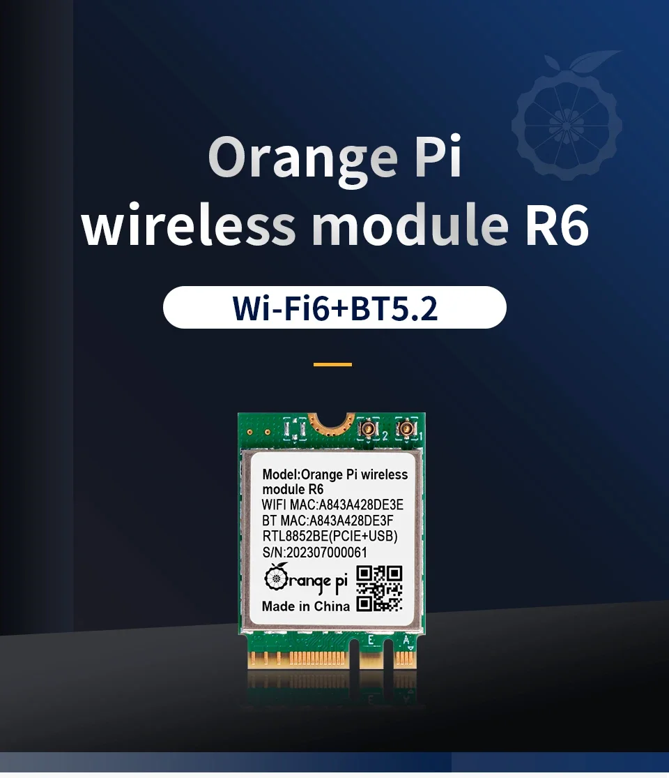 Módulo WiFi Orange Pi R6 para placa OPi 5 Plus 2,4G/5G Wi-Fi6 de doble banda + BT5.2 con módulo inalámbrico de interfaz de llave electrónica PCIE M.2