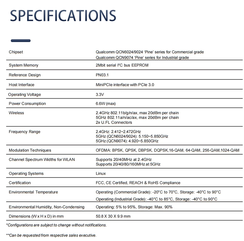 Módulo WiFi6 802.11ax de doble banda 2,4 GHz 5GHz 2T2R MU-MIMO señal de 2,4 Gbps amplia OFDMA transporte de seguridad de ciberseguridad Industrial empresarial