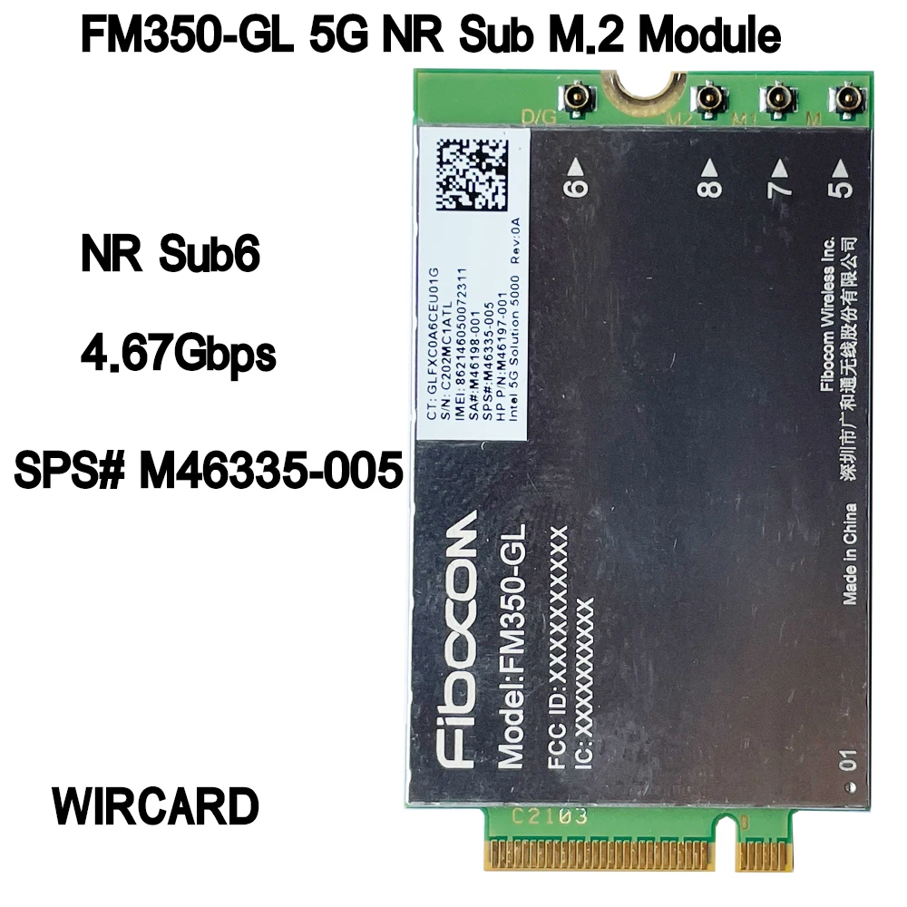 Comprar Módulo WIRCARD FM350-GL 5G NR Sub6 M.2 para portátil HP X360 830 840 G7 5G LTE WCDMA 4x4 MIMO GNSS