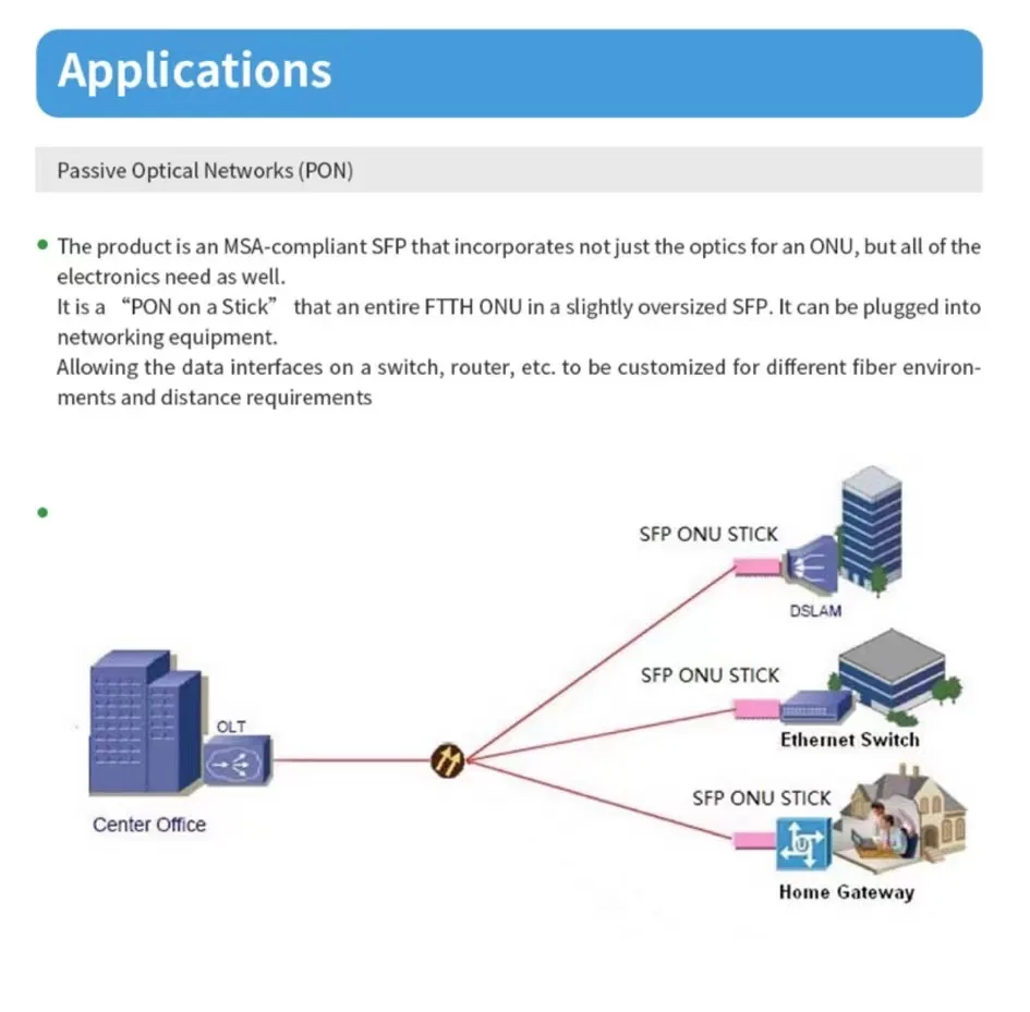 Módulo de palo XPON SFP ONU 1,25G/2,5G/APCCon MAC PoE IPoE HGU 1310nm/1490nm 20KM Módulo PON OLT ONU MAC XPON=EPON + GPON