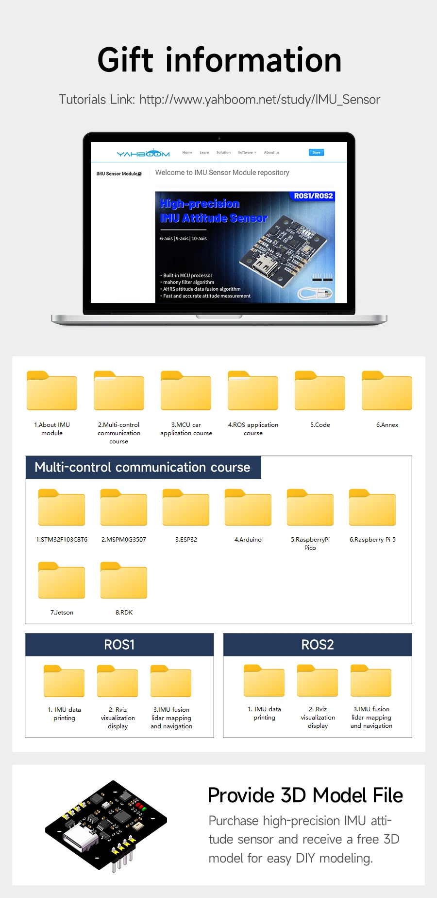 Desde el equilibrio y la navegación del robot, el control de vuelo del dron y el monitoreo de actitud del dispositivo IoT, los módulos IMU Yahboom son el componente central ideal para el control de movimiento inteligente, proporcionando una base de datos sólida para sus aplicaciones innovadoras.