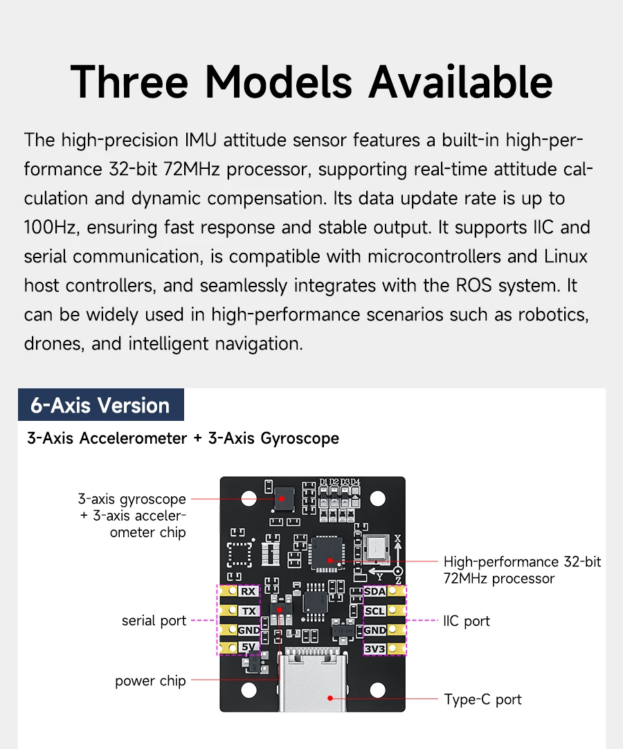 Módulo de Sensor Yahboom IMU ARHS de alta precisión 6 ejes/9 ejes/10 ejes soporte opcional ROS1 ROS2 para ROS Robot Raspebrry Pi Jetson