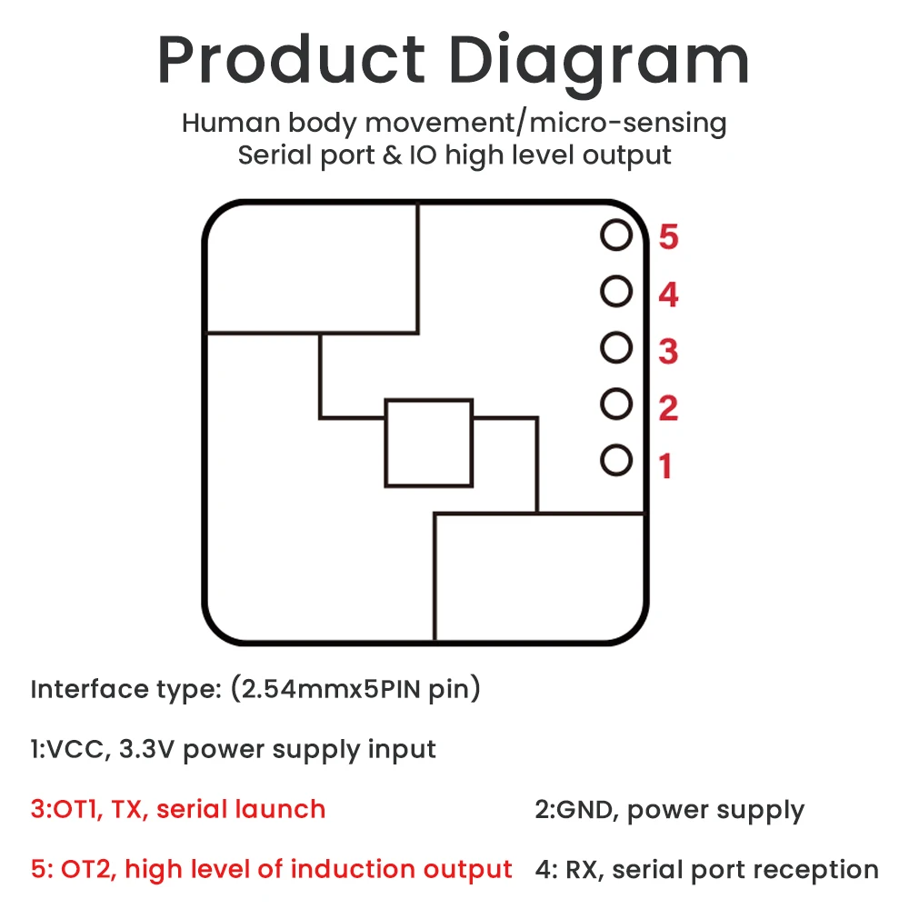 Módulo de Radar LD2420, módulo de Sensor de movimiento humano, compatible con 24GHz, interfaz GPIO UART, Sensor inteligente de baja potencia, 5 pines