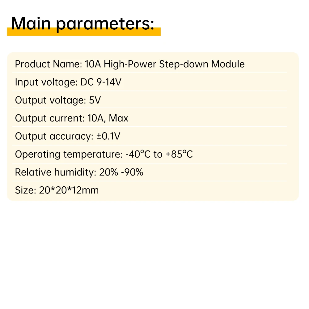 Módulo de fuente de alimentación reductor inteligente con diseño de entrada de CC de 9-14 V de ancho, admite salida continua de alta corriente de 10 A, eficiencia de conversión ultra alta, mecanismo de protección cuádruple integrado contra sobretensión, sobrecorriente, cortocircuito y sobrecalentamiento, adaptable a -40C~+85°C entorno hostil, que puede satisfacer las necesidades de suministro de energía de múltiples escenarios para sistemas de control industrial de terminales IoT, sensores inteligentes, desarrollo integrado y nuevos dispositivos de energía.