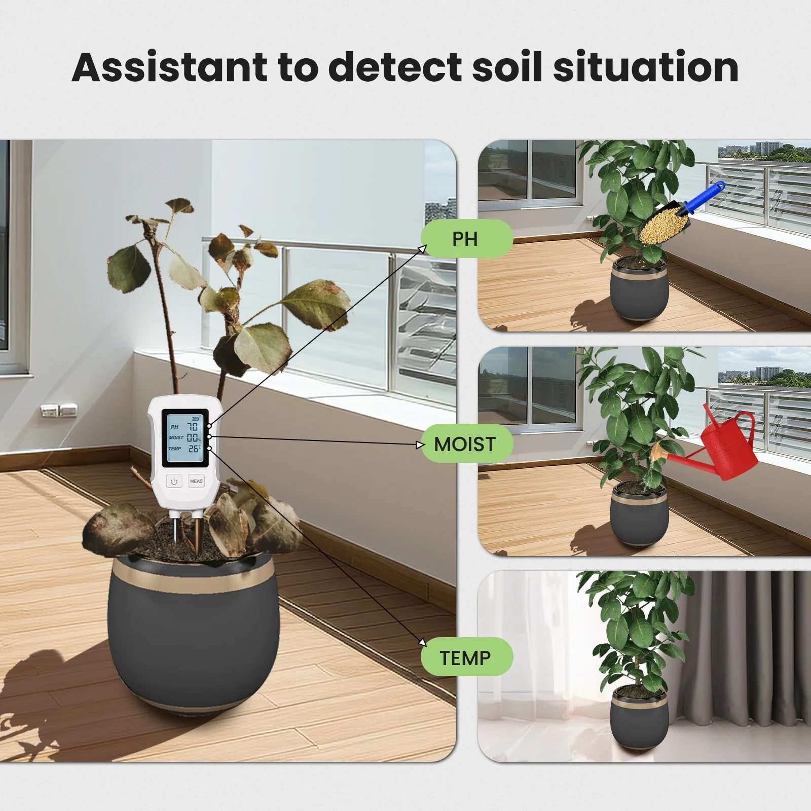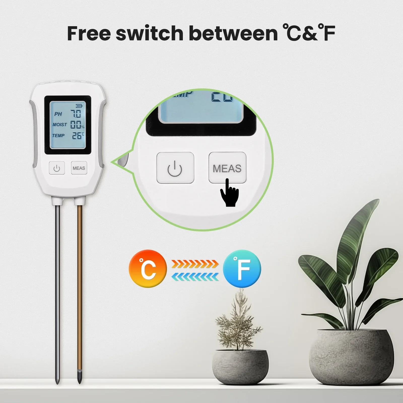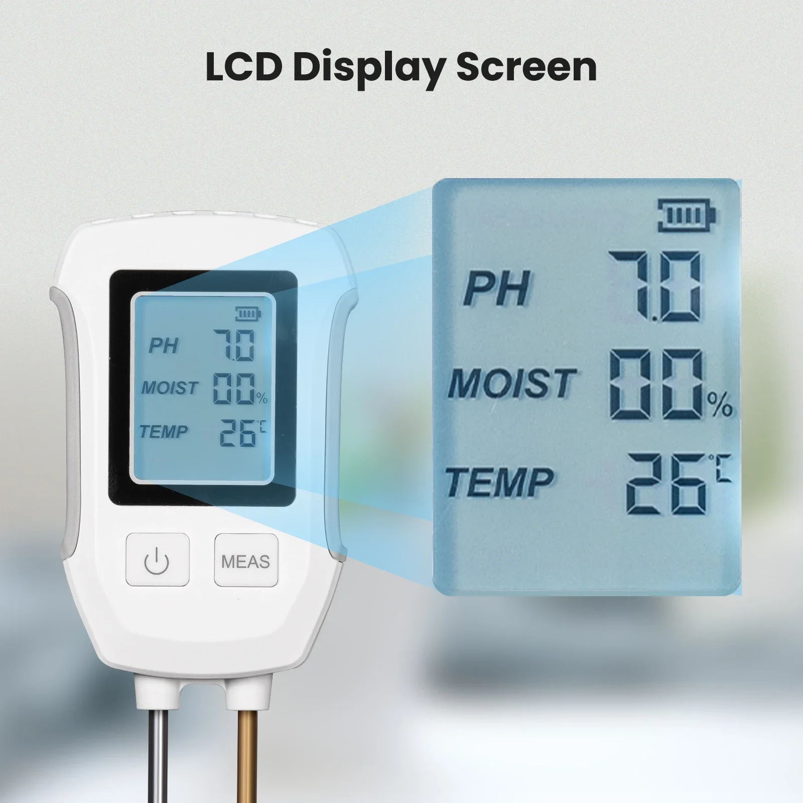 MOES 3 en 1 Detector de PH del suelo Probador Pantalla LCD Termómetro Temperatura Medidor de humedad para jardinería Plantación en maceta de flores