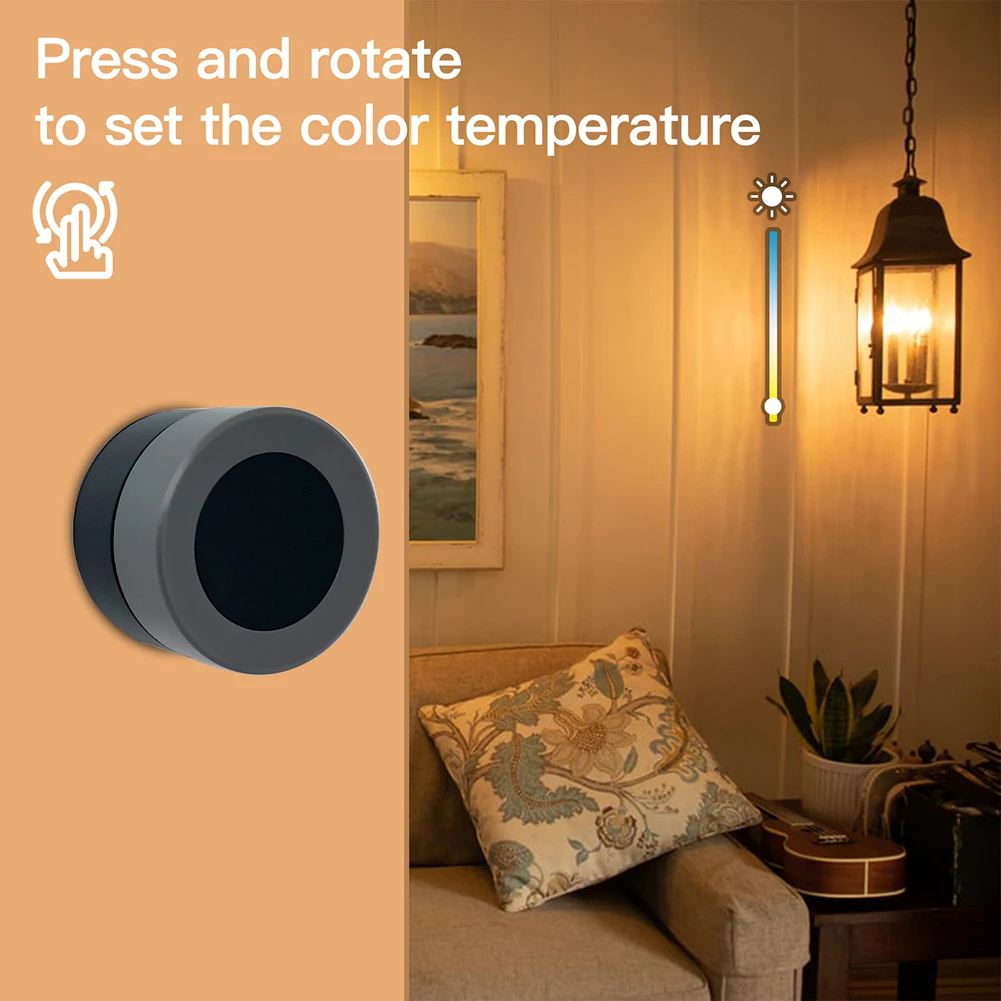 4. Cuatro operaciones bajo modo remoto para satisfacer diferentes demandas: una sola pulsación para encender/apagar la bombilla, girar al atenuador normal, pulsar y girar para establecer la temperatura del color, y mantén pulsado durante más de 3 segundos para establecer el color, lo que aclara la sensación real de relación calidad-precio con este mini dispositivo excelente.
