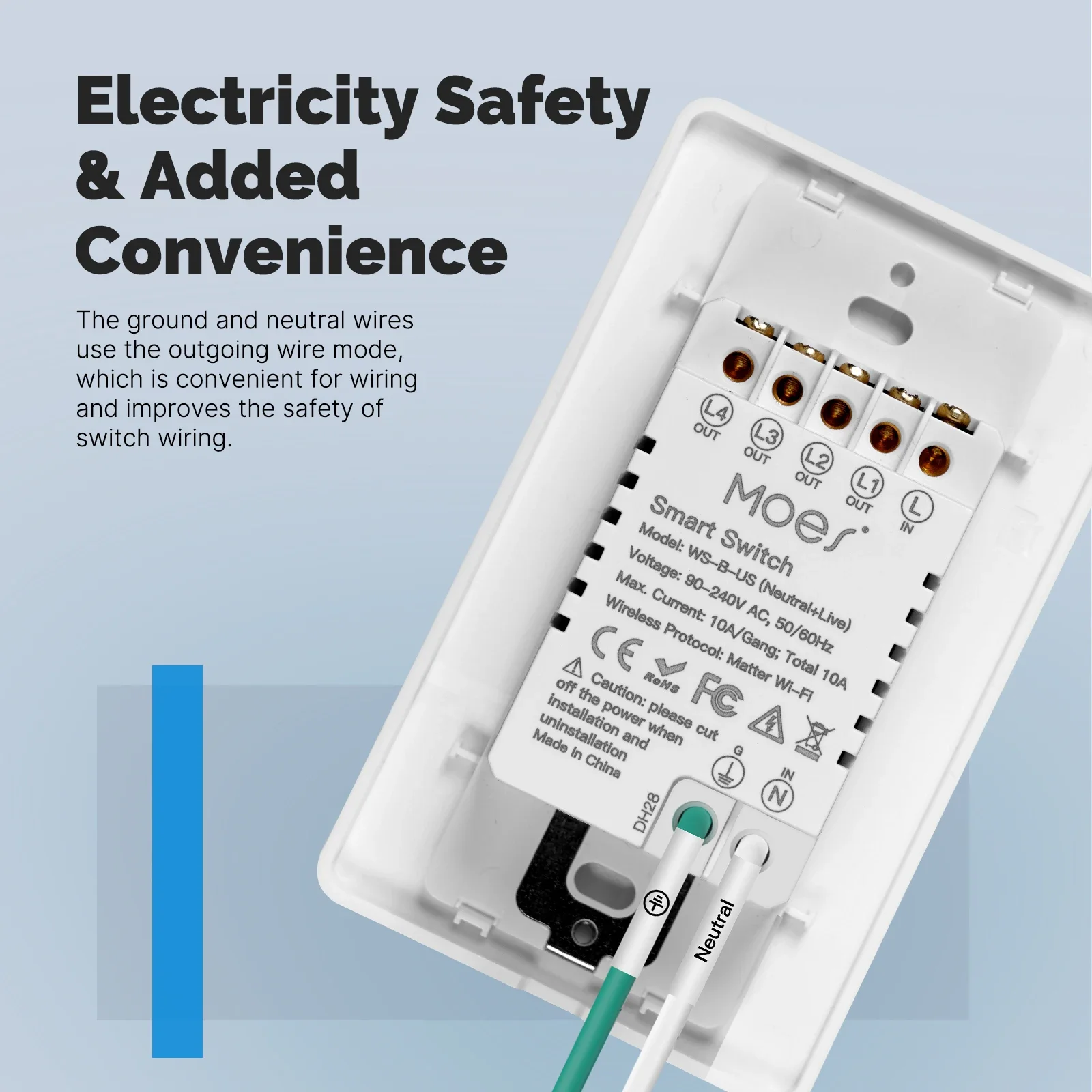 MOES Tuya Matter WiFi interruptor de botón de luz inteligente cable neutro requerido diseño con conexión a tierra aplicación remota Control Alexa Google Home - imagen 5