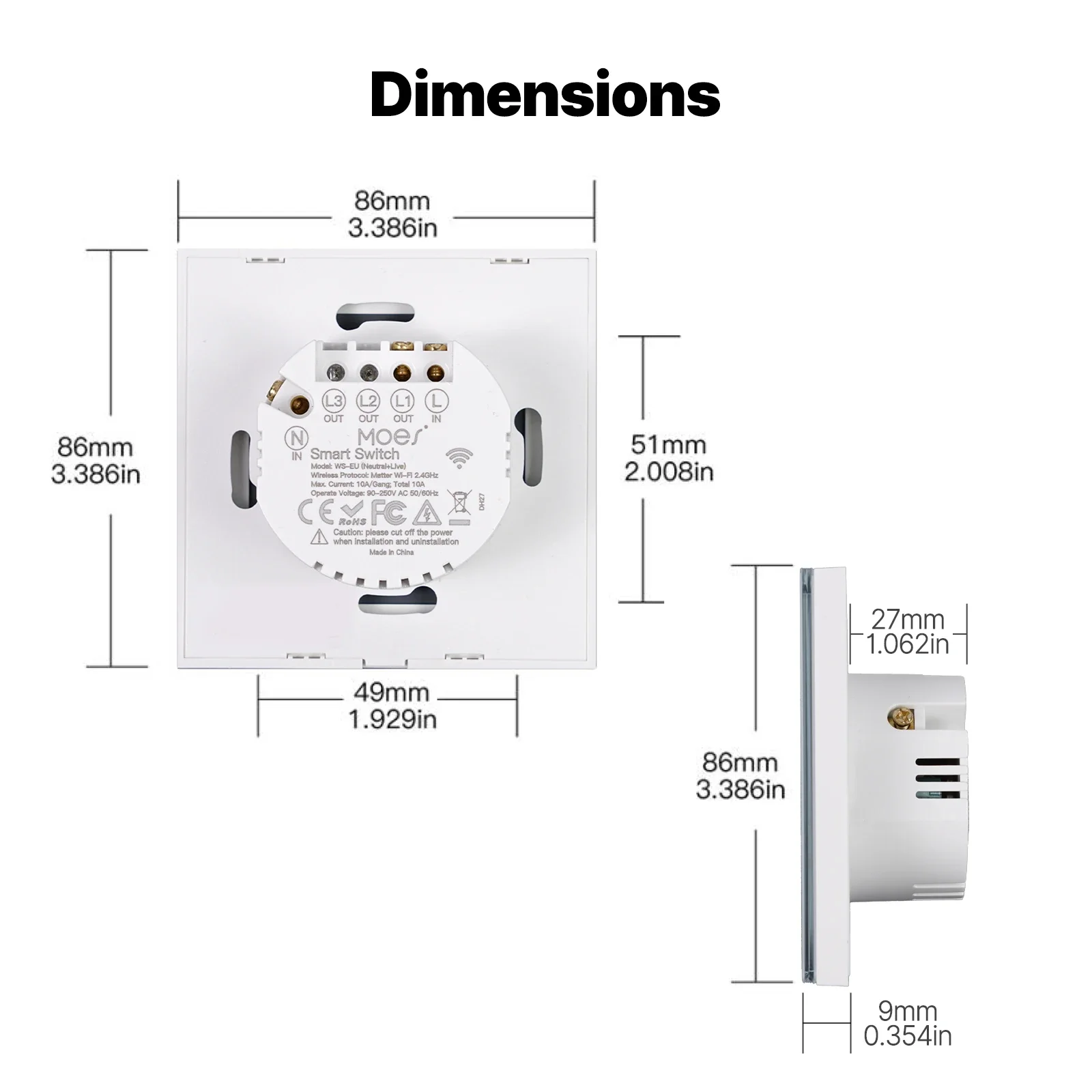 Puede configurar fácilmente la luz indicadora para indicar la posición del interruptor, mostrar el estado de encendido/apagado o cerrarlo mediante la aplicación MOES para satisfacer sus necesidades personalizadas.