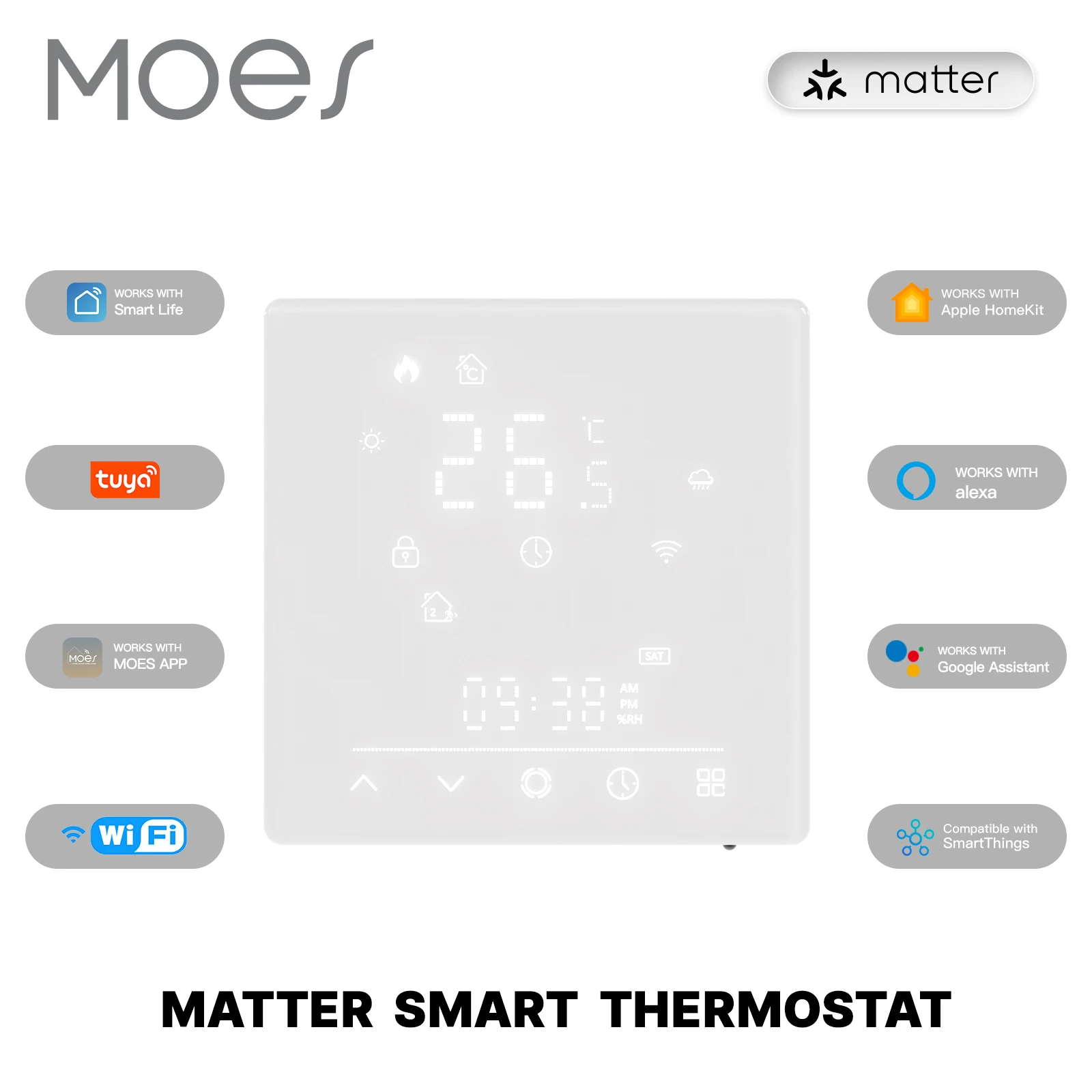 MOES Tuya Matter WiFi termostato inteligente controlador de temperatura caldera de agua calefacción eléctrica con Alexa Google Apple Smartthings