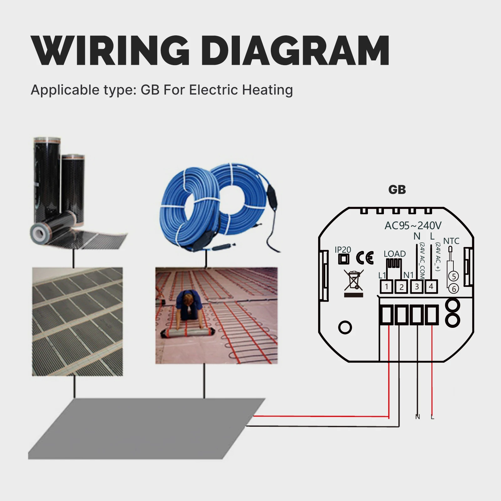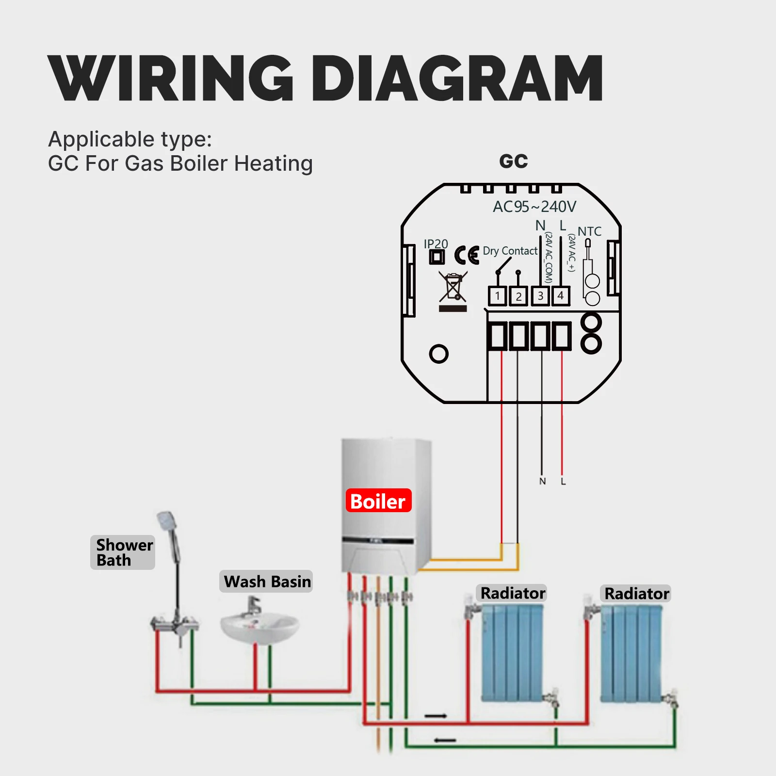 Compruebe que la versión de su termostato es GA/GB/GC y elija el método de cableado correcto.