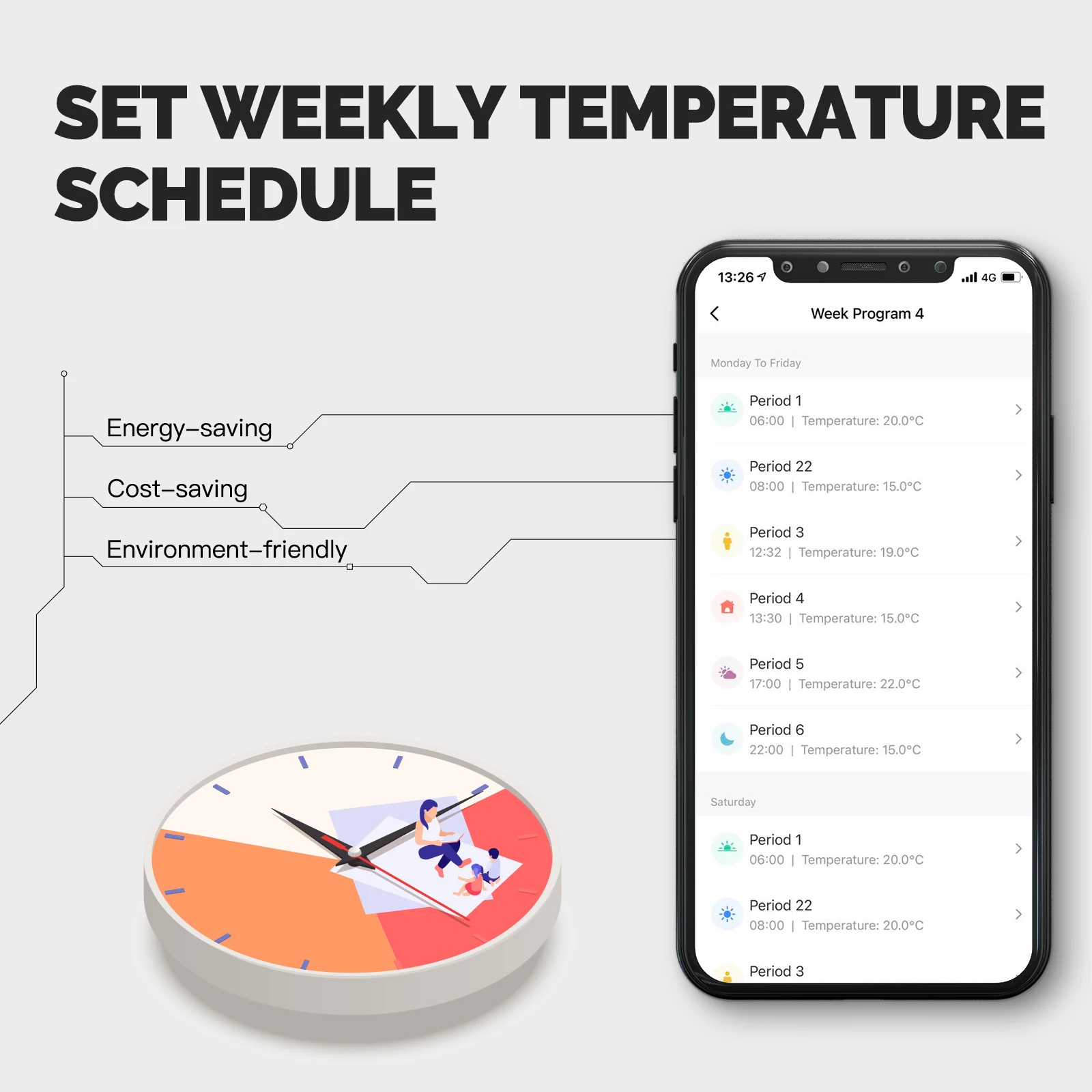 Puede configurar la temperatura de ahorro de energía usted mismo. Cuando el modo de ahorro de energía está activado, el termostato puede mantener la temperatura a la temperatura de ahorro de energía para ahorrarle energía.