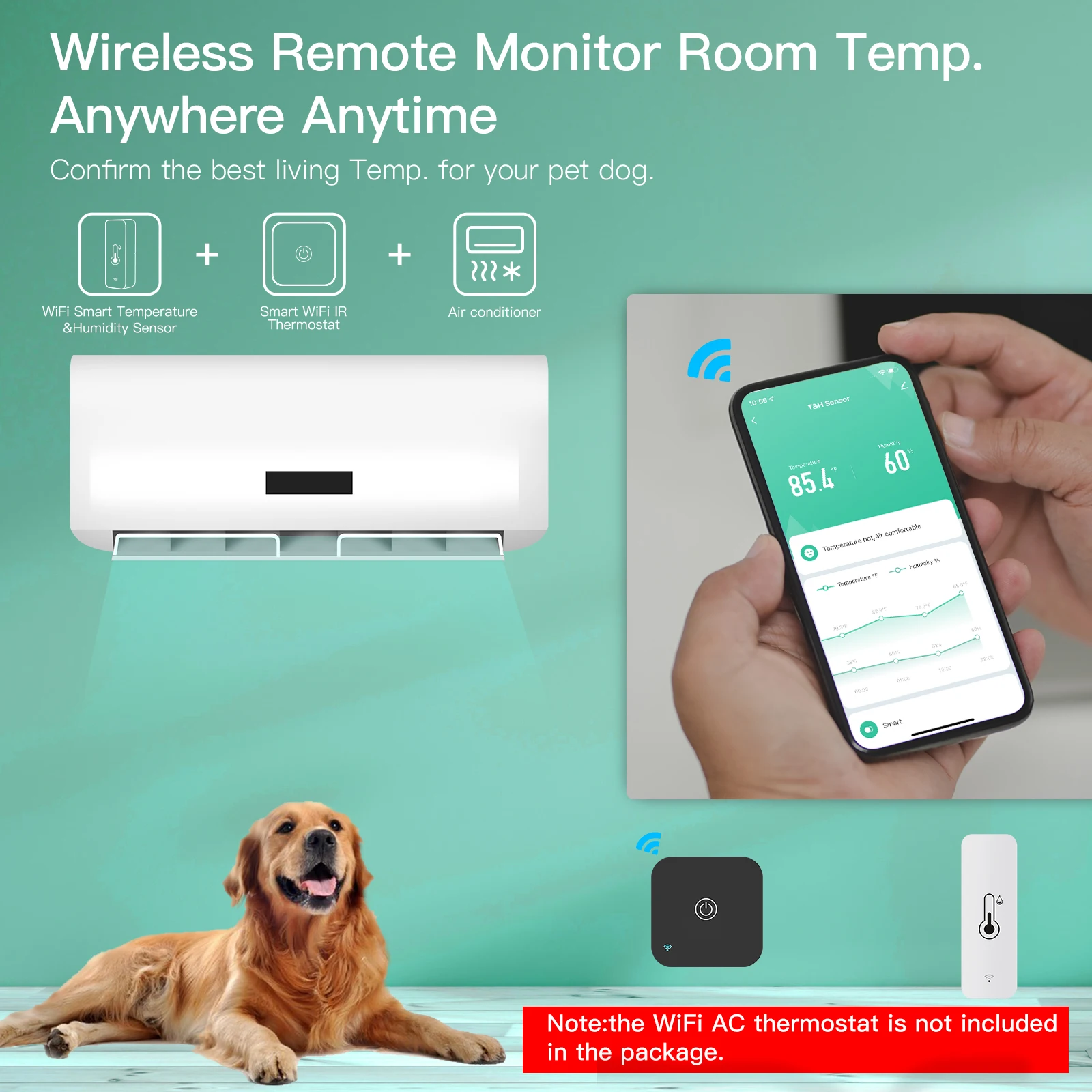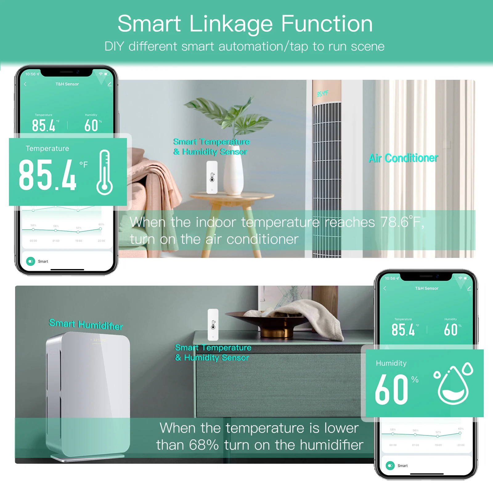 5.Compatible con la aplicación Tuya Smart, proporciona su monitor inalámbrico sobre la temperatura o humedad de la casa para sus hijos o mascotas, funciona con Alexa y Google Home para conocer el estado actual de la temperatura y la humedad a través del comando de voz; incluye 2 años de garantía y 60 días de garantía de reembolso para una completa satisfacción.