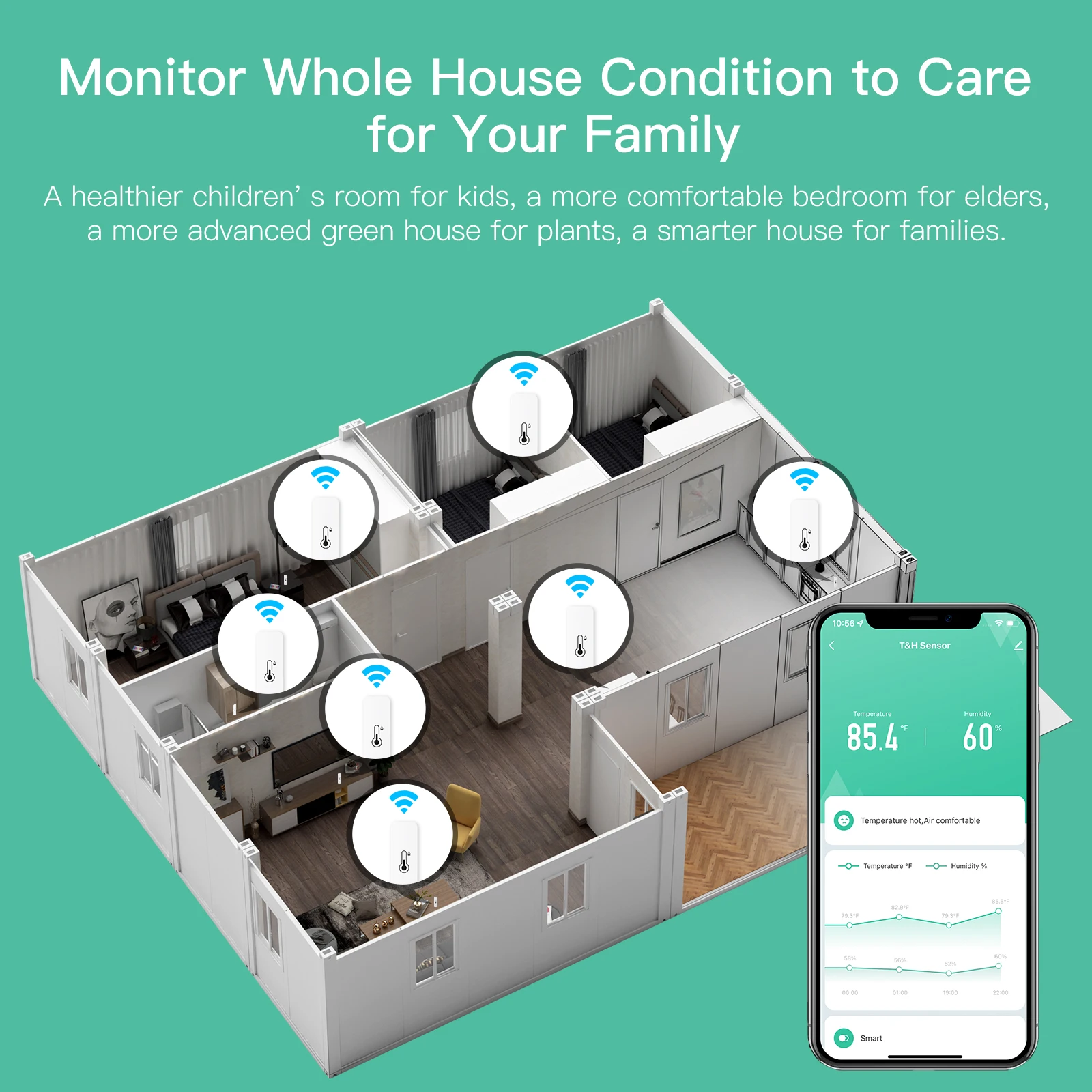 1. El nuevo sensor inteligente de temperatura y humedad WiFi está diseñado sin necesidad de una configuración rápida de la aplicación y otros controles inteligentes incluidos directamente en la aplicación Tuya Smart, cuyo diseño conciso y aerodinámico se adapta bien a cualquier aplicación para garantizar la temperatura y la humedad más cómodas para nuestra vida inteligente.