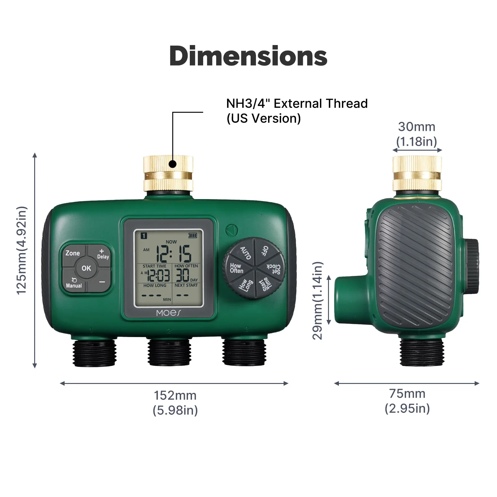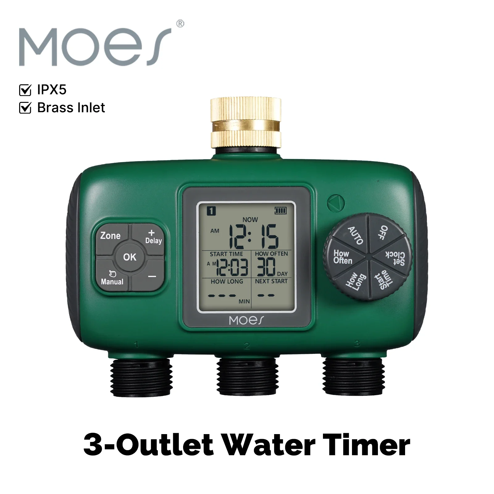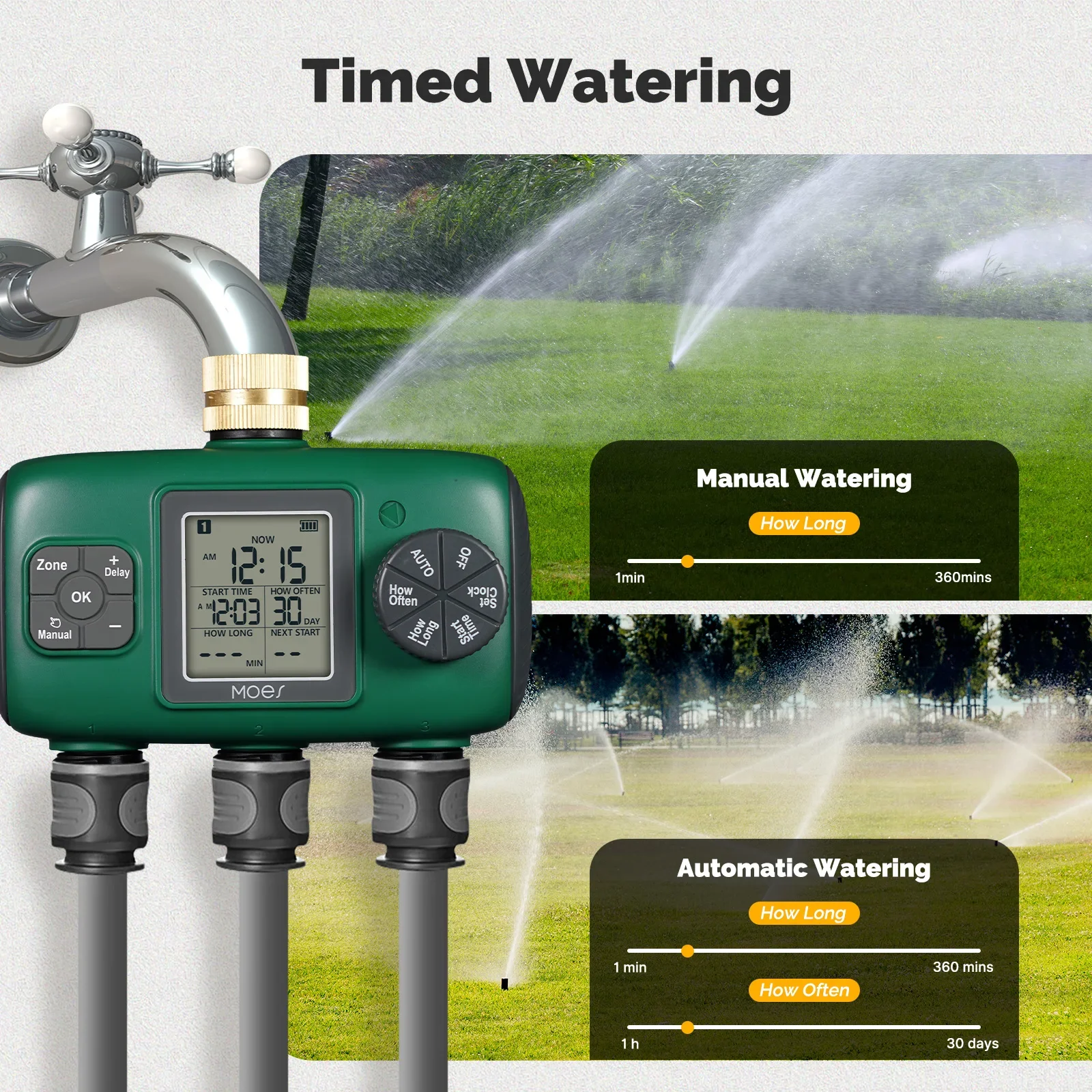Seleccione el tiempo de riego y el programa que necesita ajustar a través de la perilla y cuatro botones, y preséntelo en la pantalla LCD, lo cual es conveniente e intuitivo.