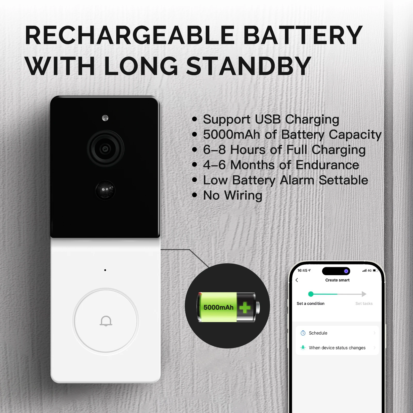 Cuando la alarma de baja potencia es configurable, una carga completa de esta batería recargable tarda solo de 6 a 8 horas, pero dura de 4 a 6 meses, lo que hace que no se preocupe por la interrupción del uso.
