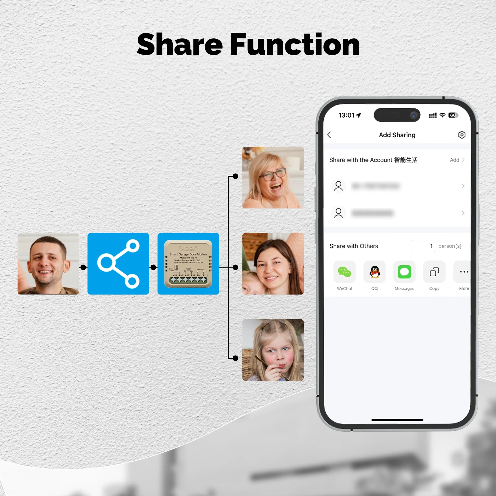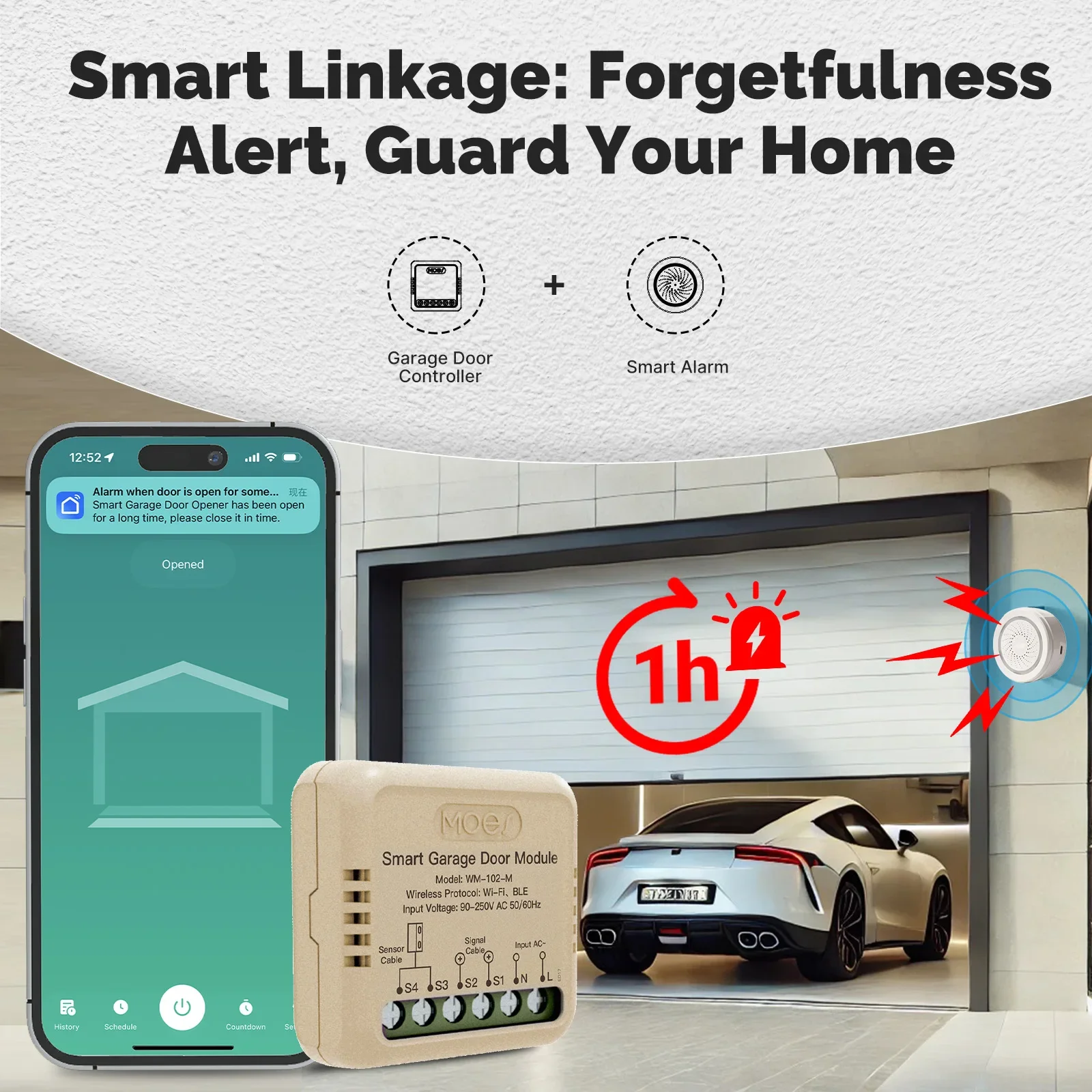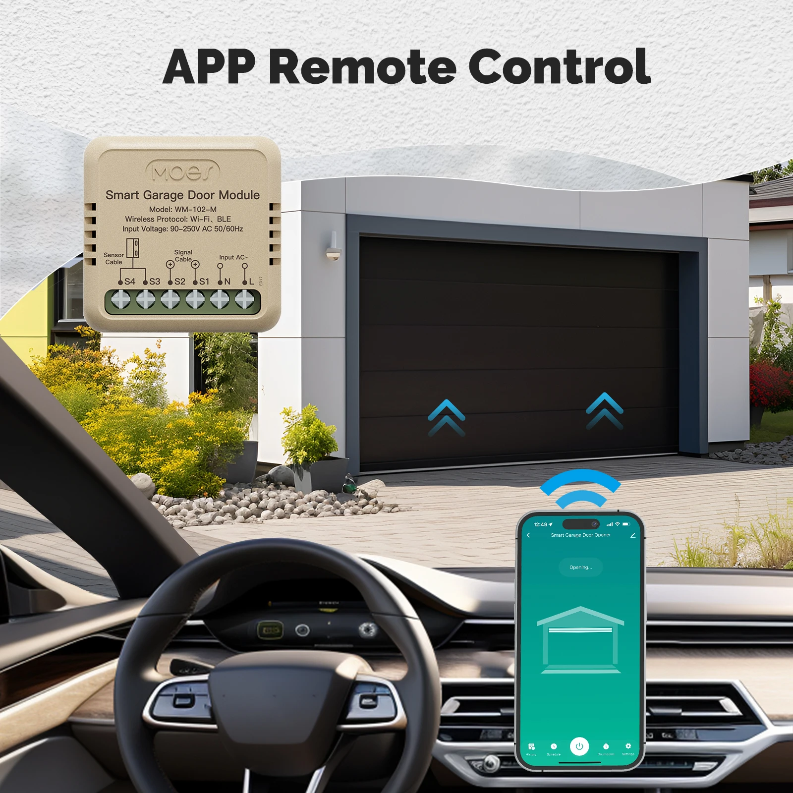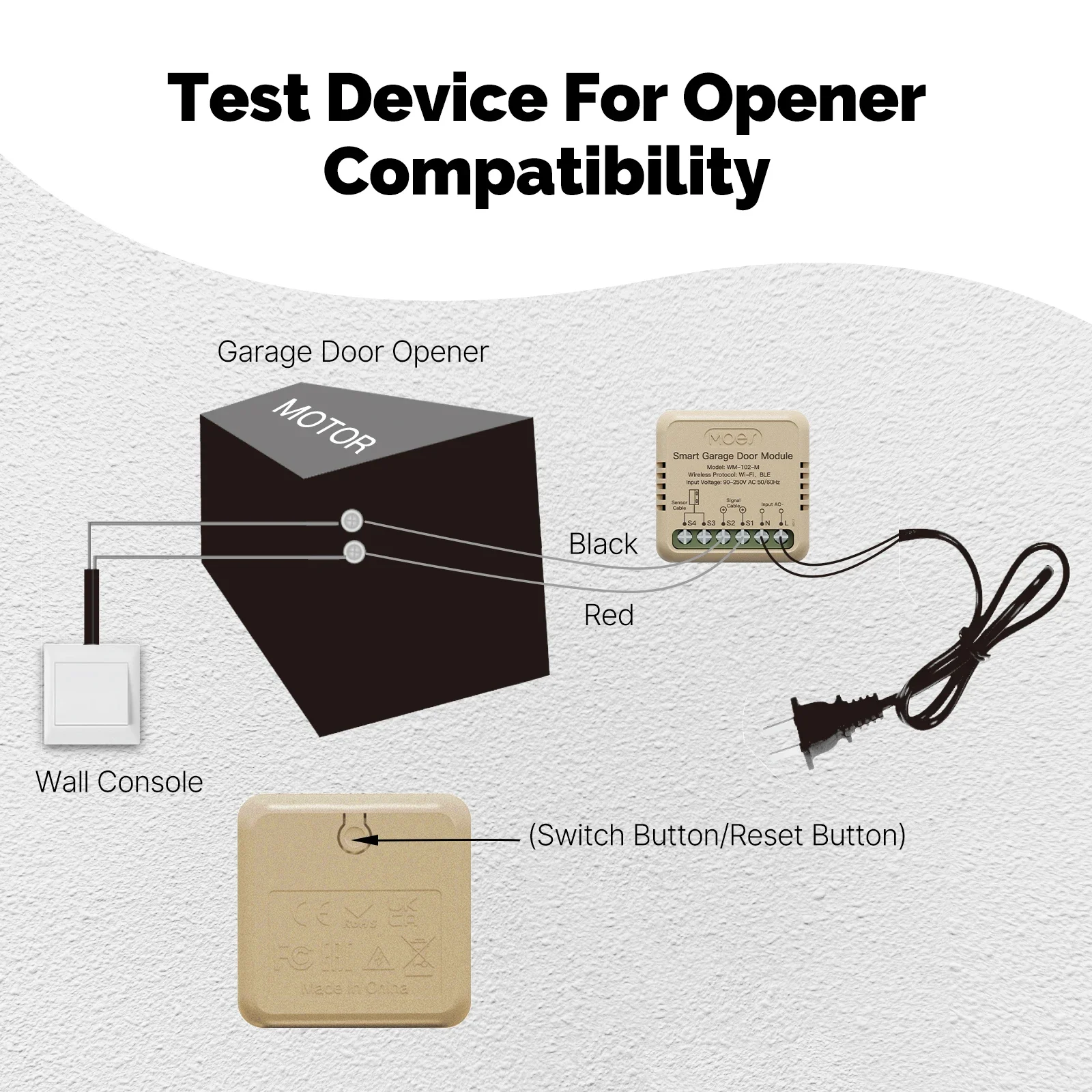3.Presione el botón en la parte posterior del dispositivo; Si la puerta del garaje se activa, es compatible.