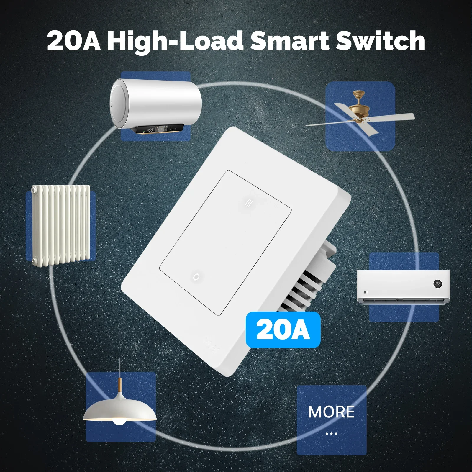 Interruptor inteligente de 20 A, controla fácilmente y gestiona de forma segura electrodomésticos de alta potencia, brindando una experiencia inteligente diferente a los electrodomésticos tradicionales.