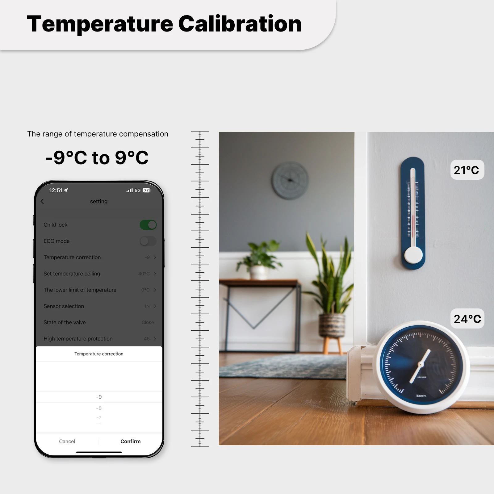 En caso de variación de temperatura entre el suelo y el aire, puede establecer el valor de calibración mediante la aplicación, para asegurarse de que la temperatura final alcance su valor ideal.