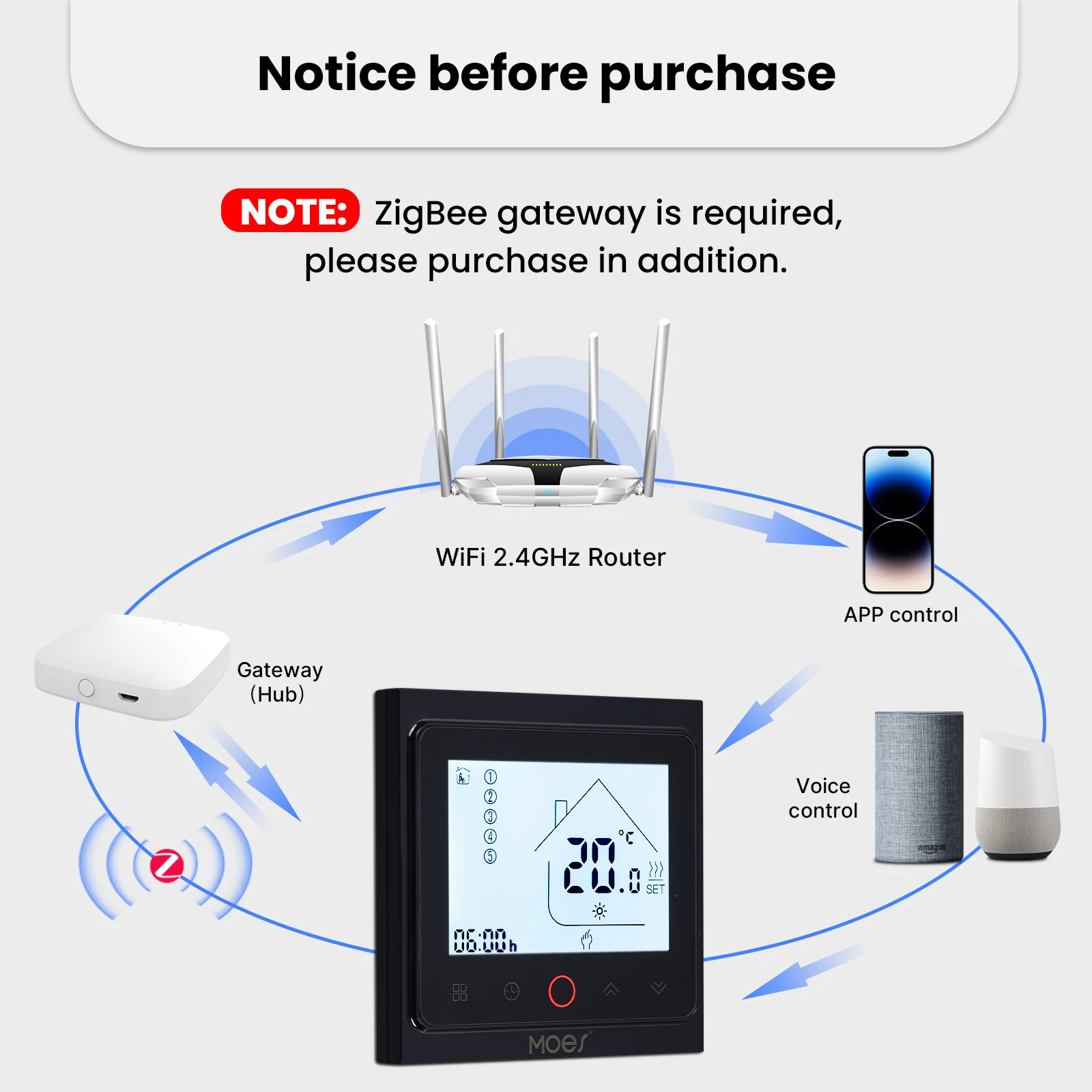 MOES Tuya ZigBee termostato inteligente Control de temperatura ambiente agua/caldera de Gas de calefacción por suelo eléctrica funciona con Alexa Google Home