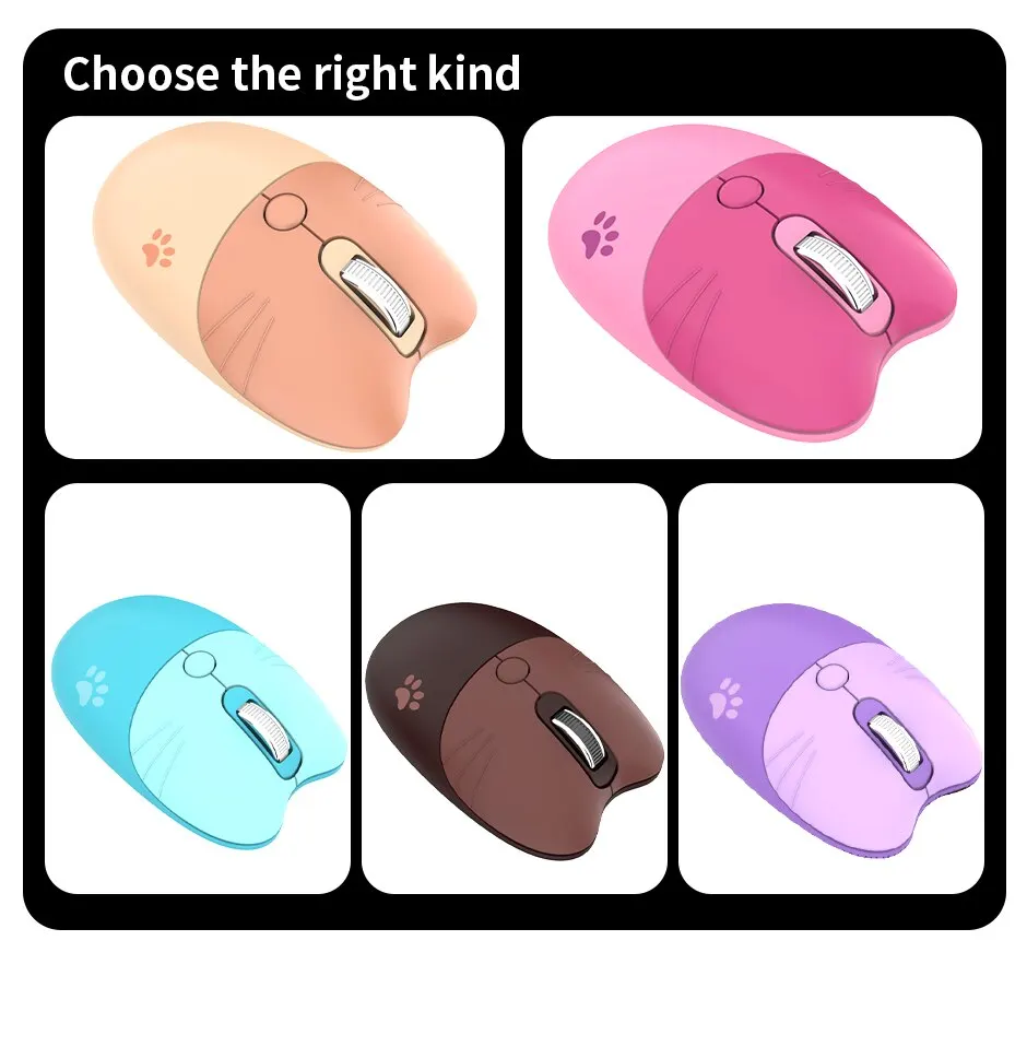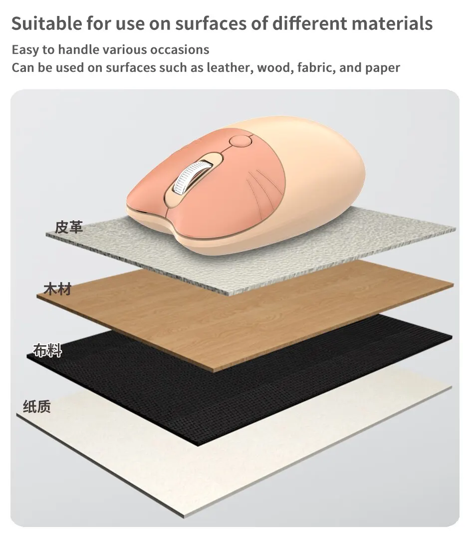 【Diseño lindo del oído del gat】 Adoptando el diseño aerodinámico del auricular, el ratón inalámbrico es cómodo de agarrar y se adapta perfectamente a sus manos, proporcionando la máxima comodidad y apoyo.