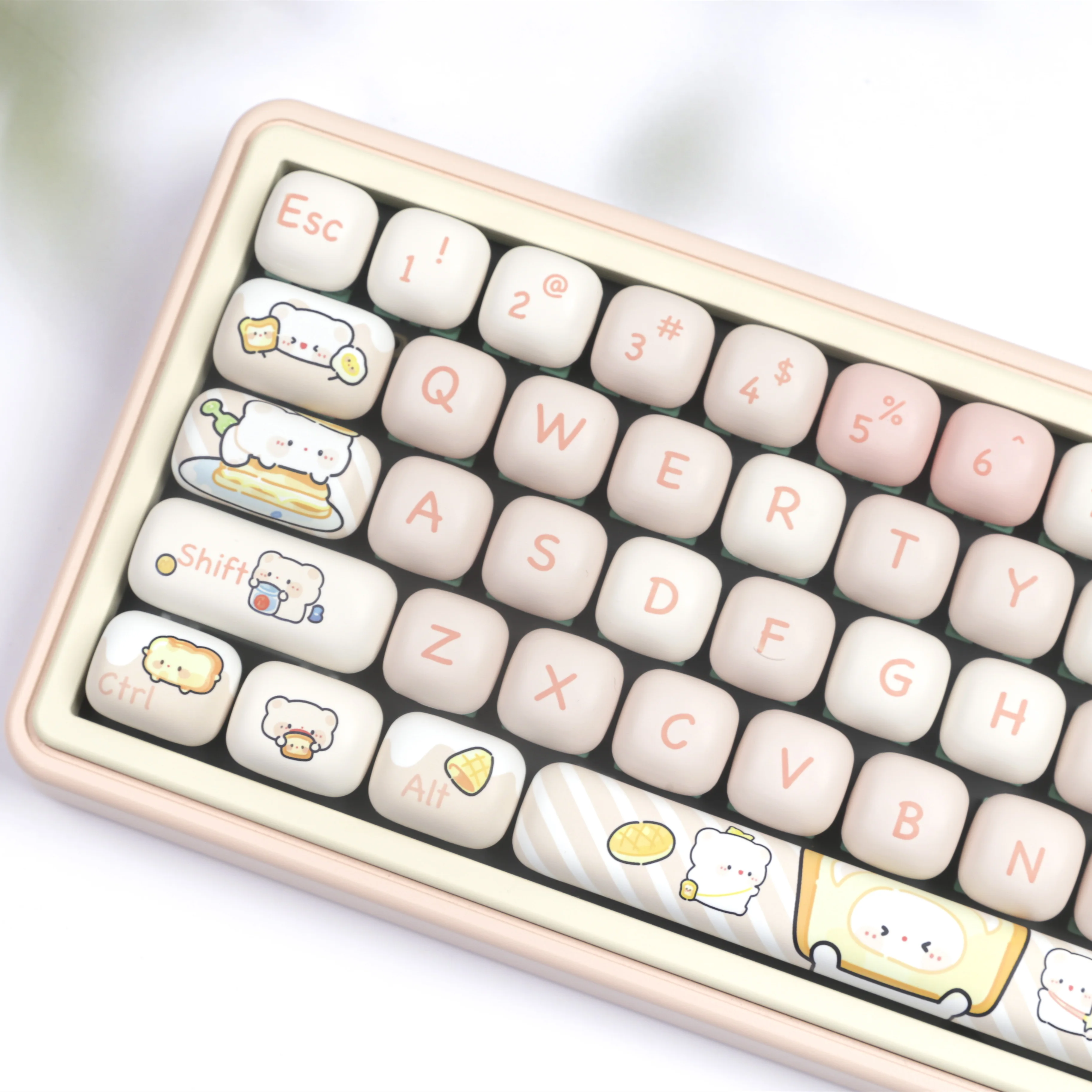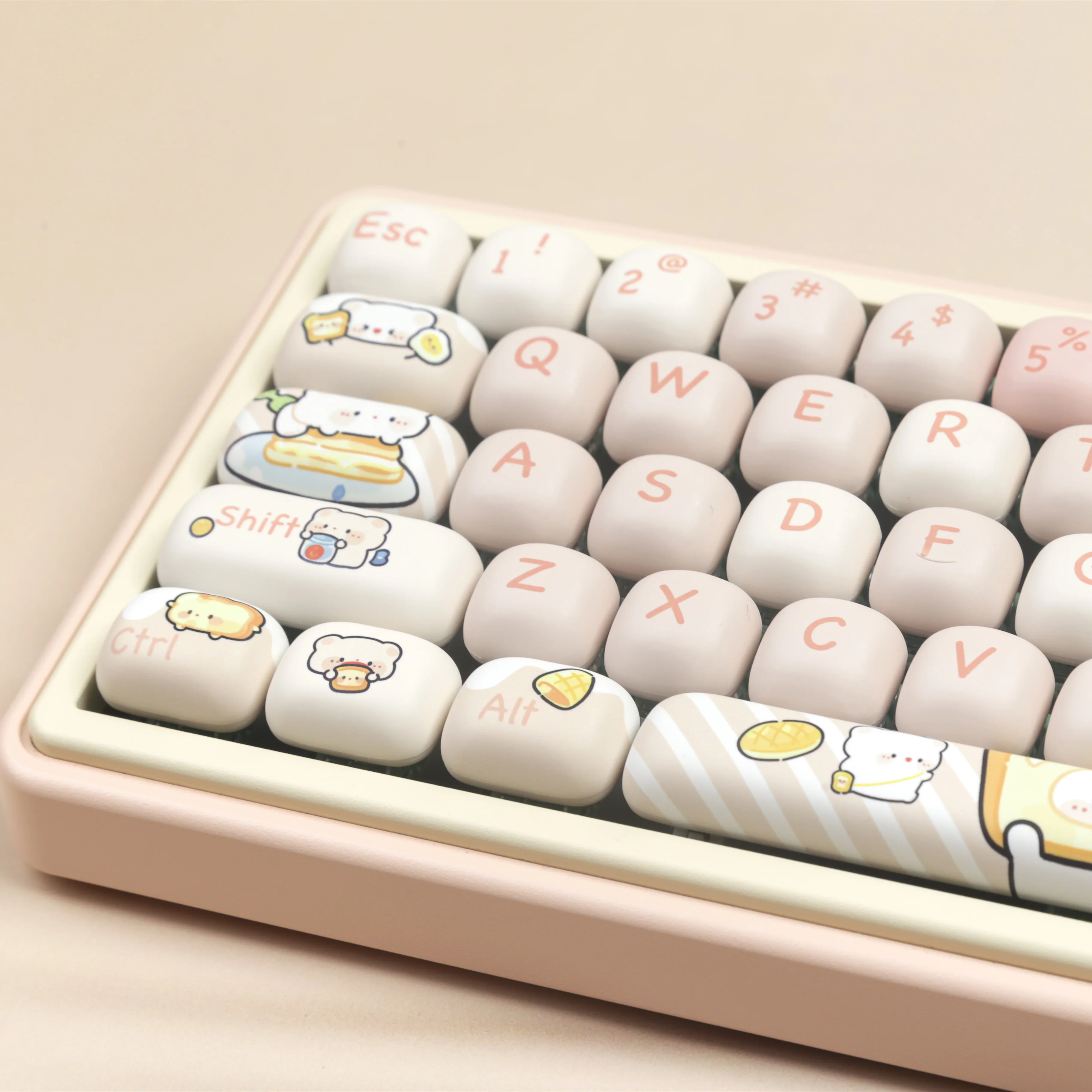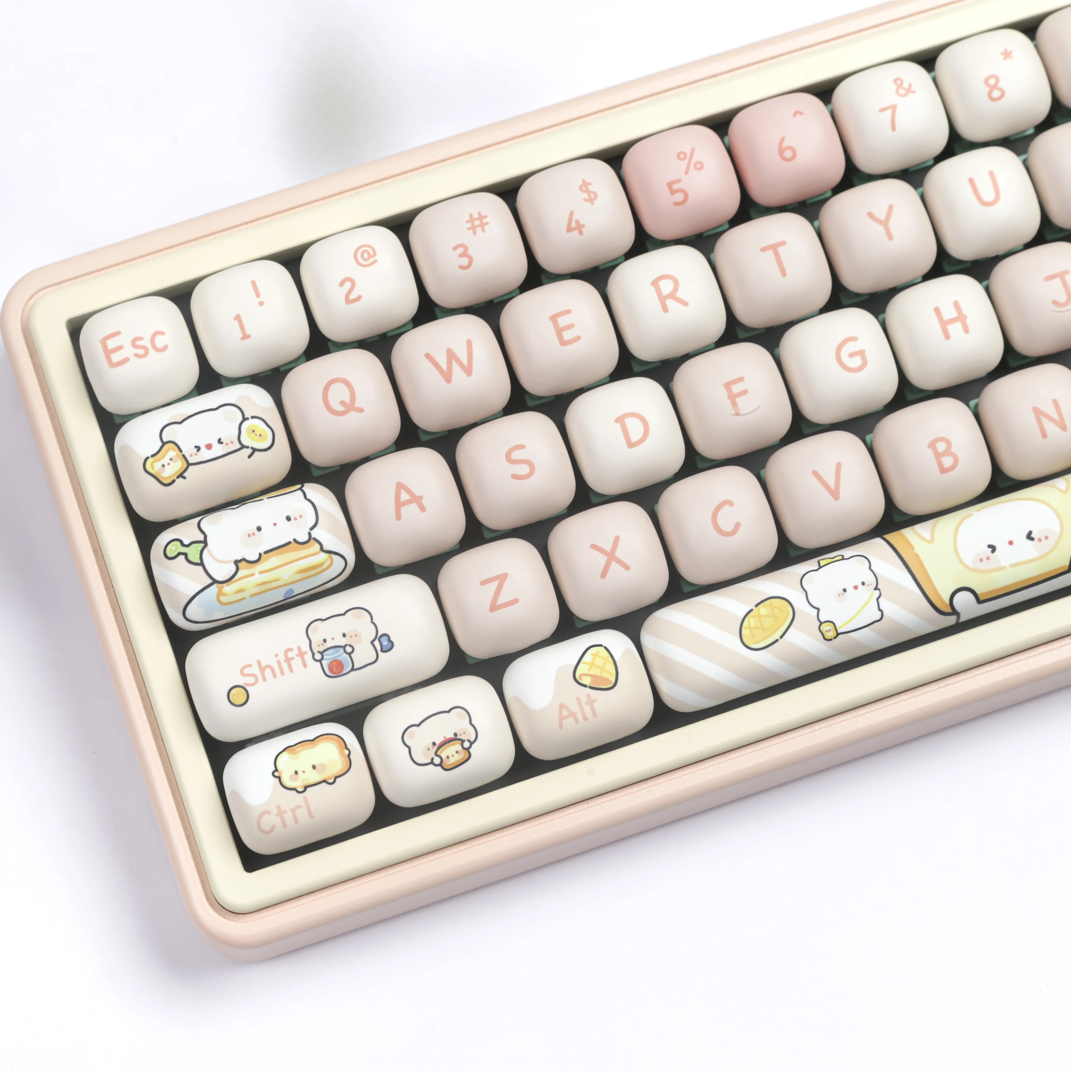 Comprar MOG Keycaps PBT Bread Bear sublimación térmica 140 teclas para teclado mecánico Mx Switch regalos para niñas AKK