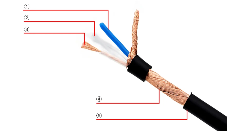 ④ Capa de blindaje de cobre libre de oxígeno en espiral 99.99%