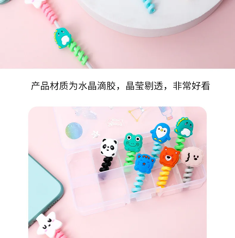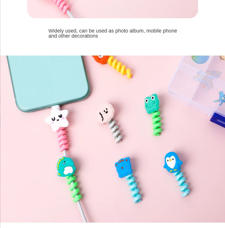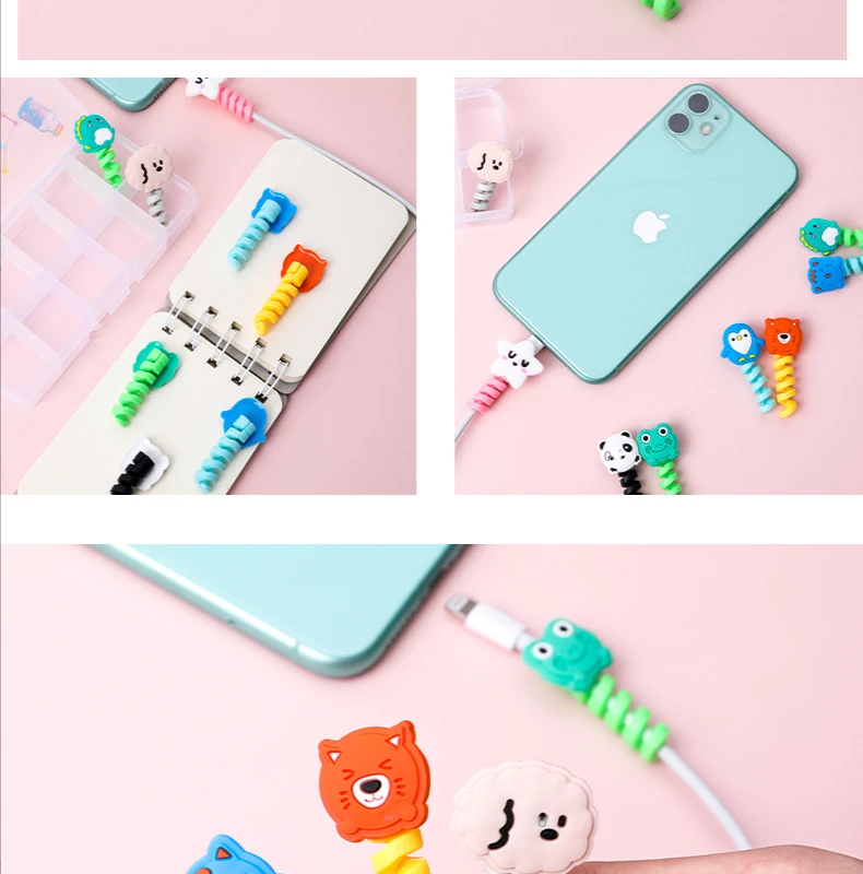 Comprar MOhm-Protector USB en espiral de dibujos animados, enrollador de bobina de silicona para ratón, cargador de Cable, organizador de cables, 5 unidades