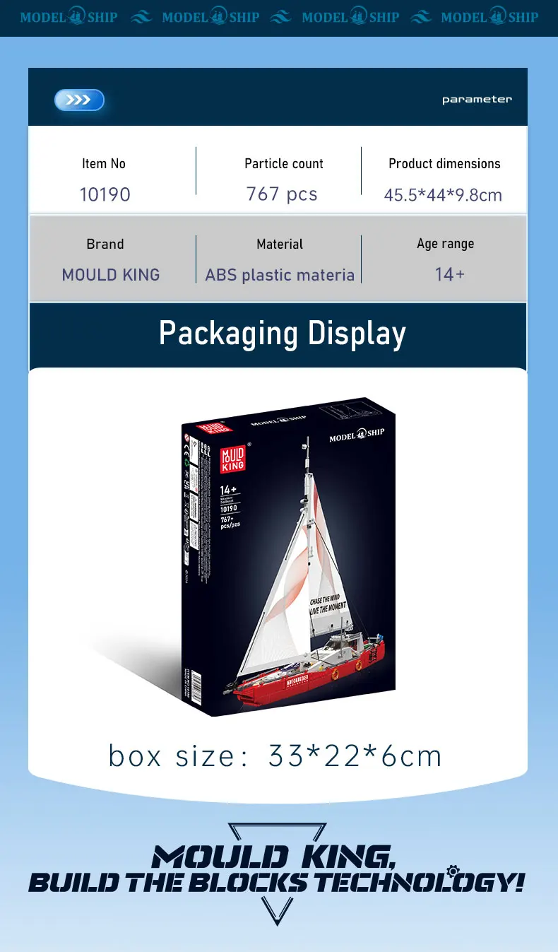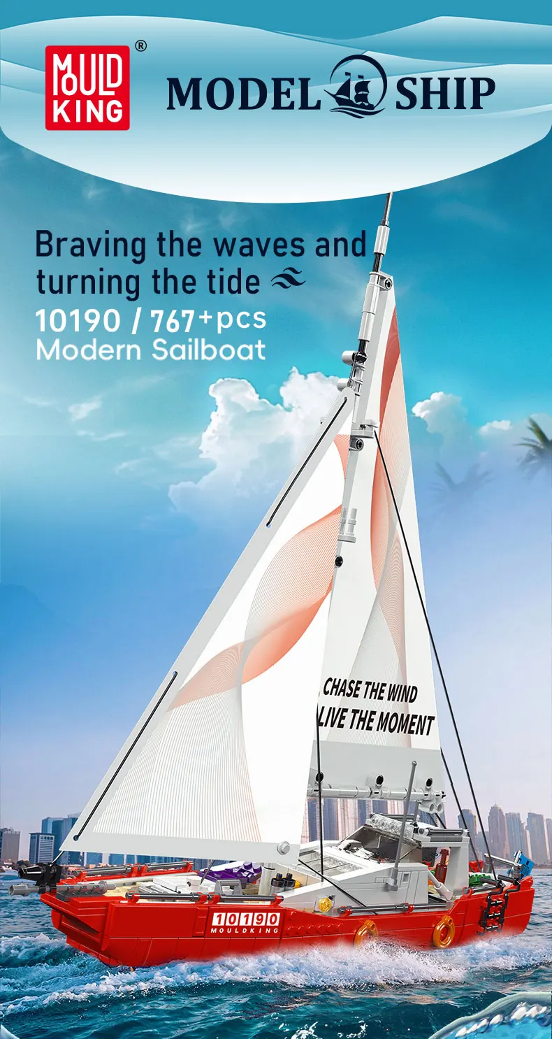 MOULD KING 10190, Kit de construcción de velero moderno, 767 Uds., bloques de construcción de ladrillos de montaje, modelo de barco creativo, juguete para niños, regalo para adultos