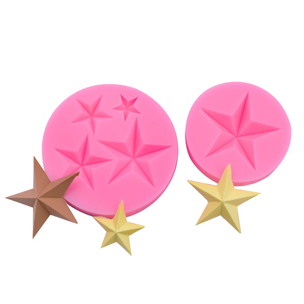 Molde de estrella de cinco puntas hecho a mano Chocolate DIY hornear azúcar volteado pastel de cumpleaños decoración cerámica suave arcilla Gel sSlicone