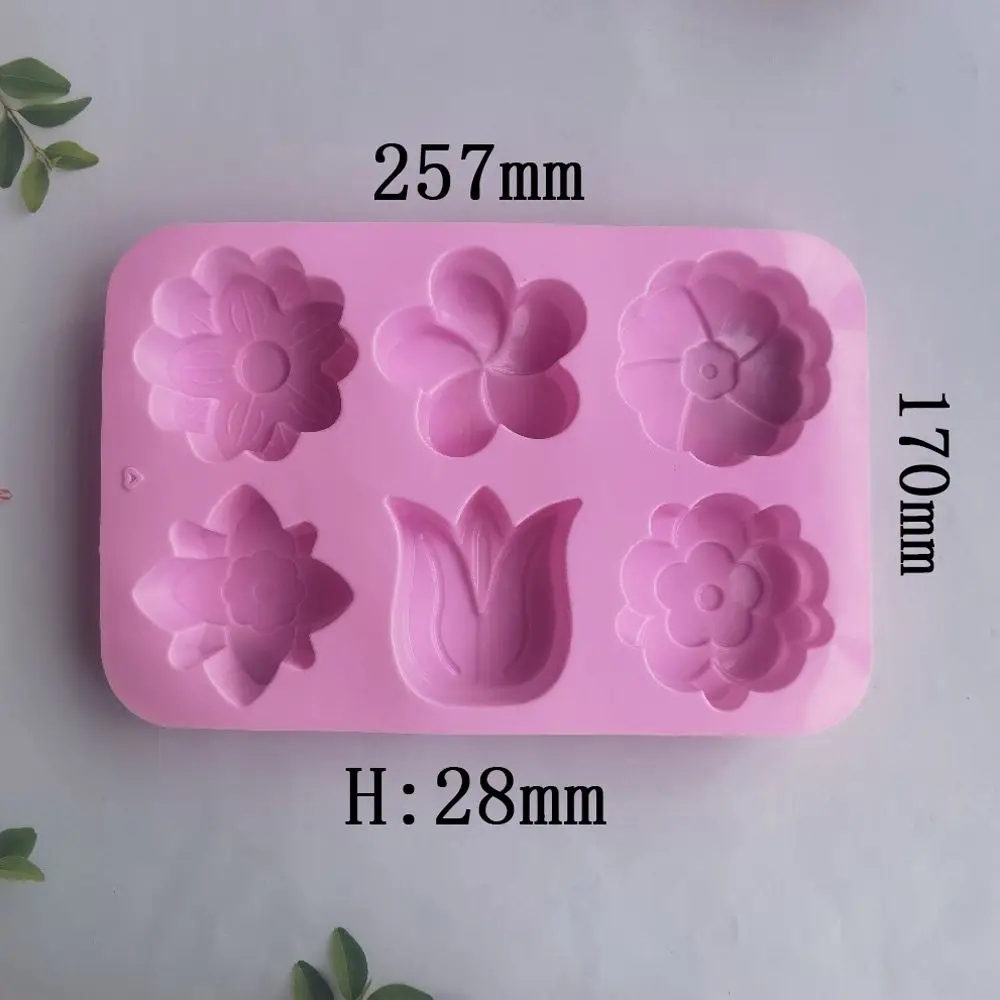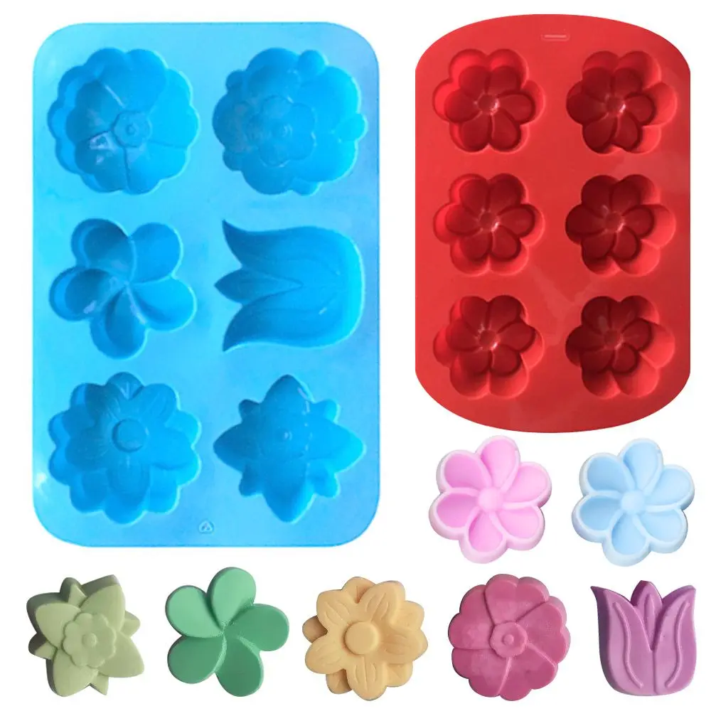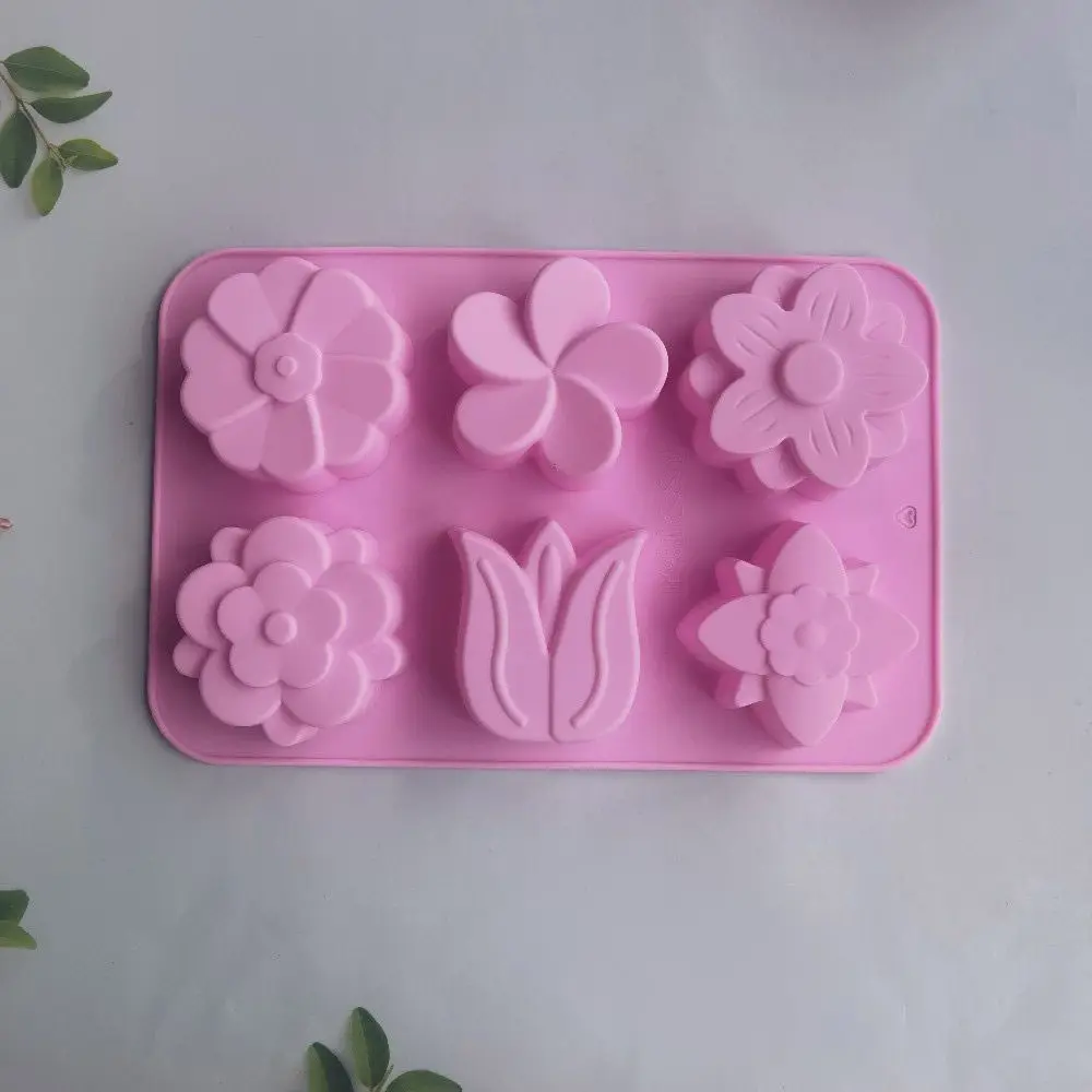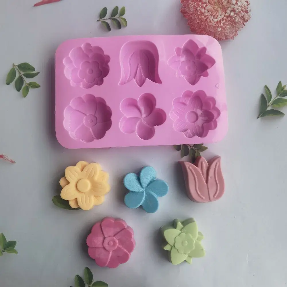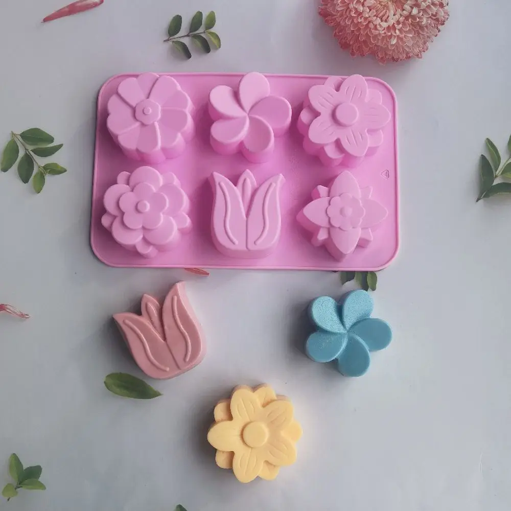 Comprar Molde de silicona con forma de flor creativa 3D, 6 cavidades, jabón hecho a mano, Fondant, decoración de pasteles, vela, pudín, caramelo