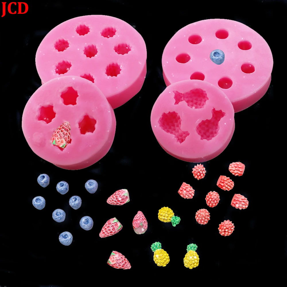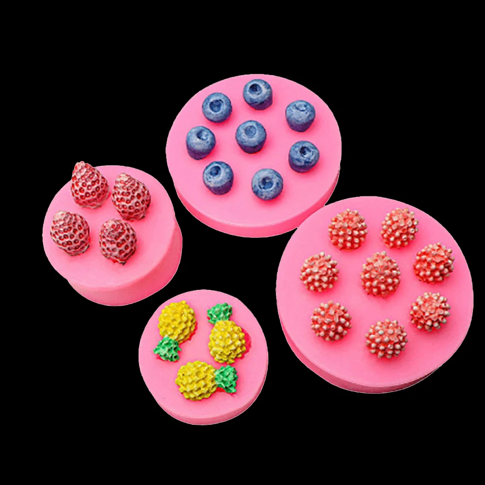 Molde de Silicona de Fruta de Imitación de Arándano, Frambuesa, Piña, Fresa Salvaje, Grado Alimenticio, Libre de Olores, Fácil Desmoldeo para Hornear Pasteles