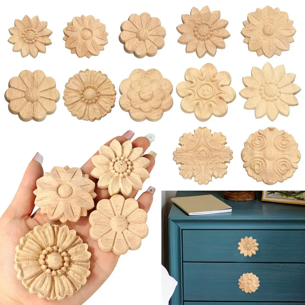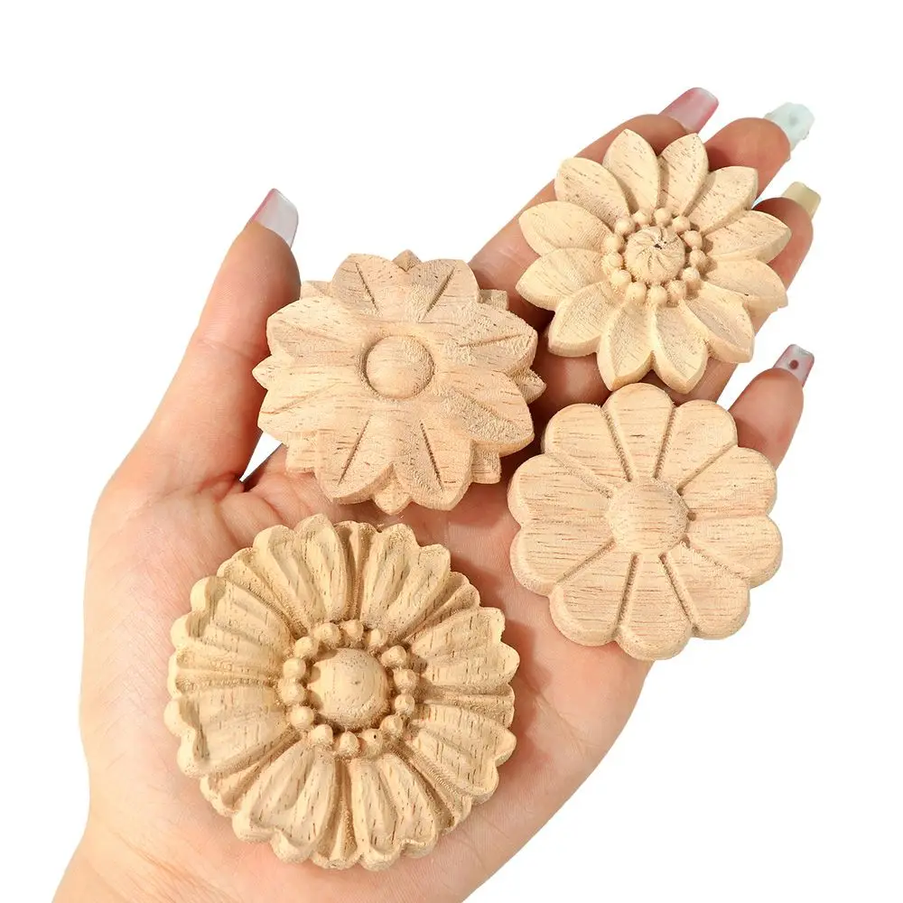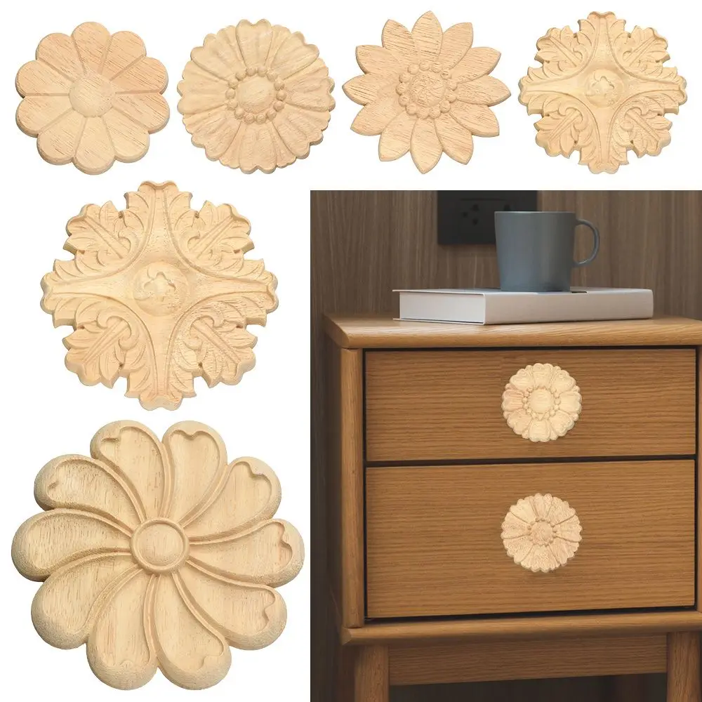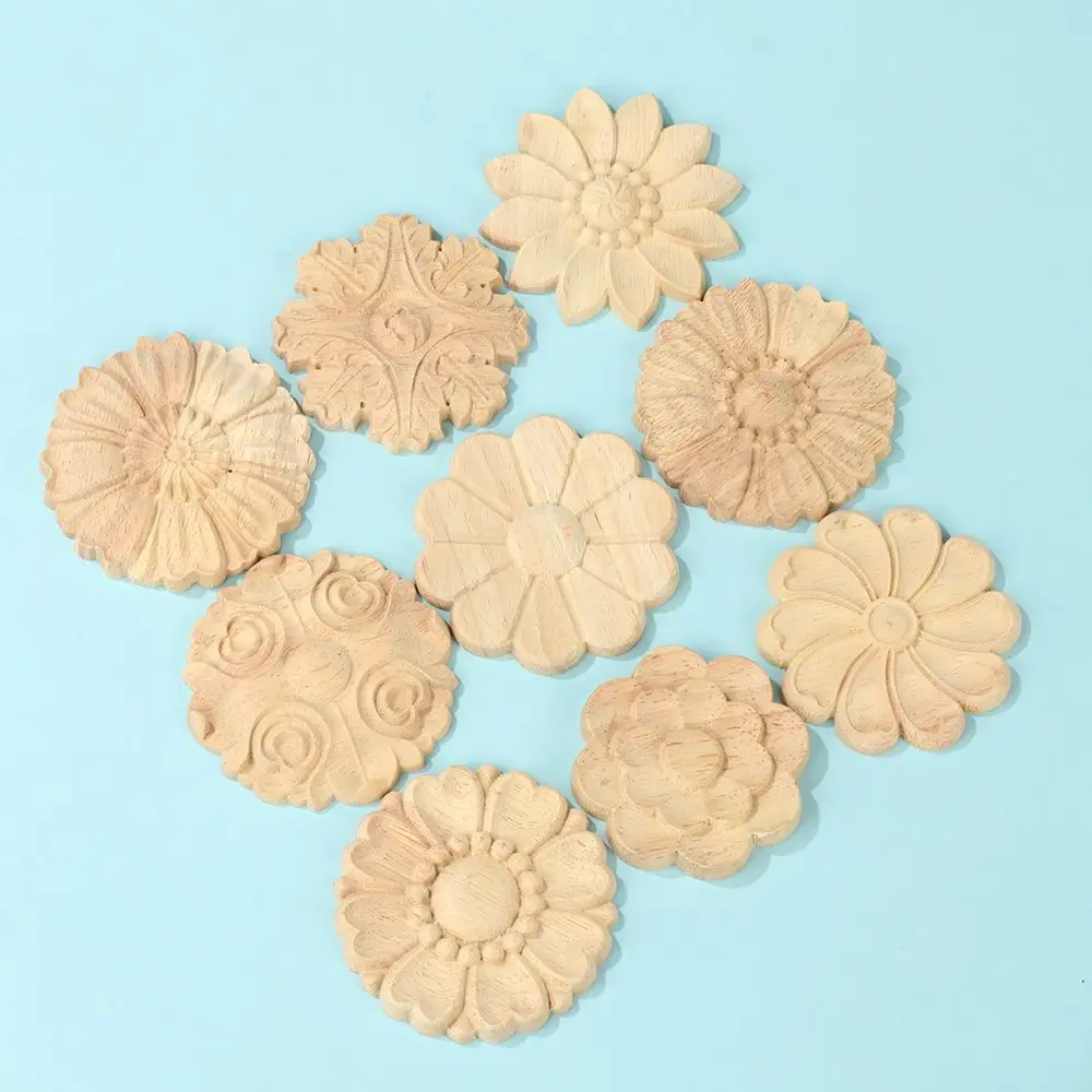 Comprar Molduras Retro talladas europeas sin pintar, apliques de madera, calcomanía de madera, goma redonda, muebles para el hogar, tallado de paredes de gabinete, decorativo