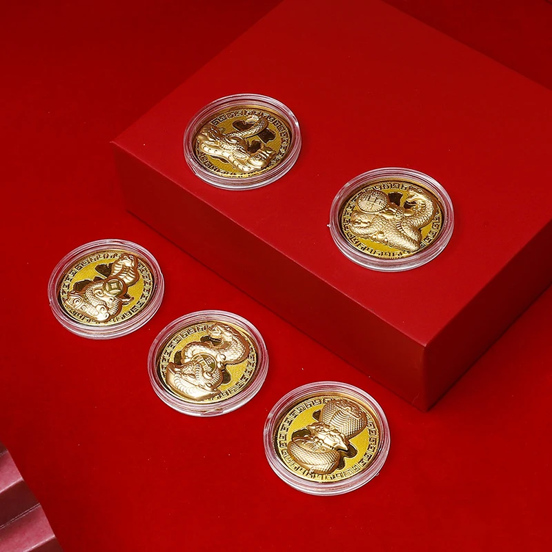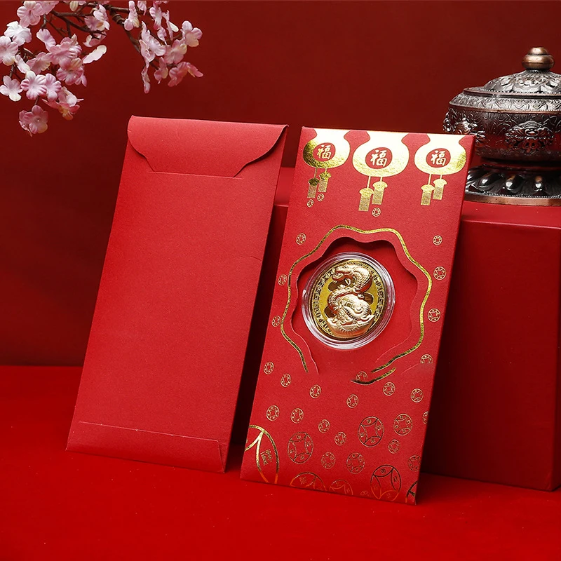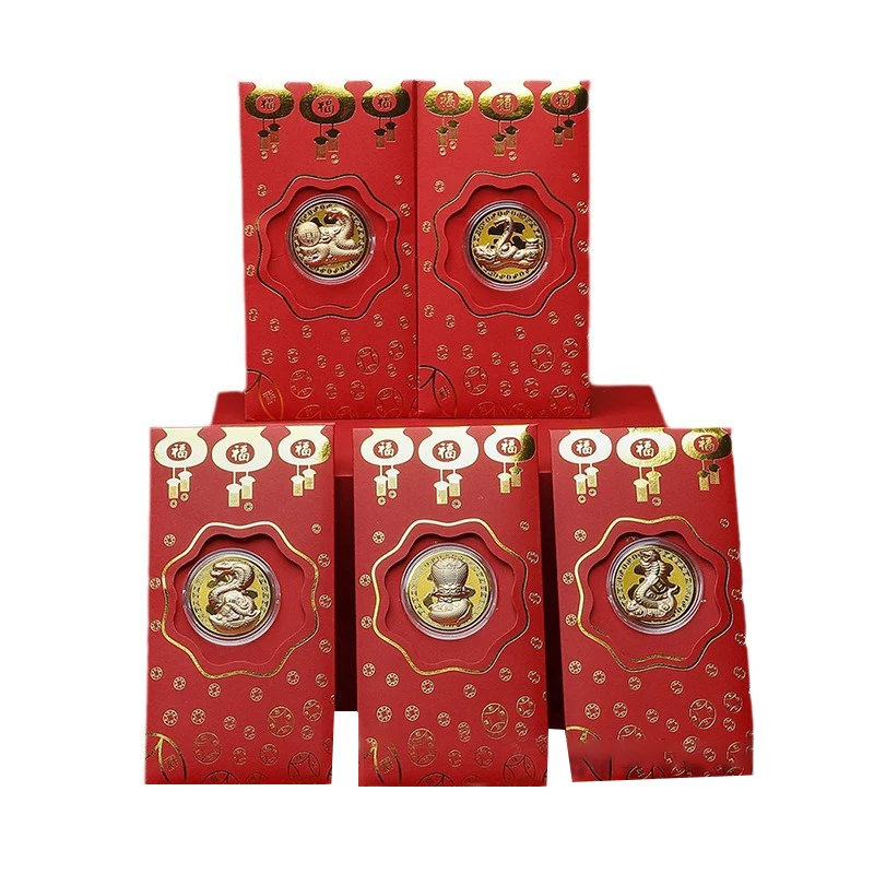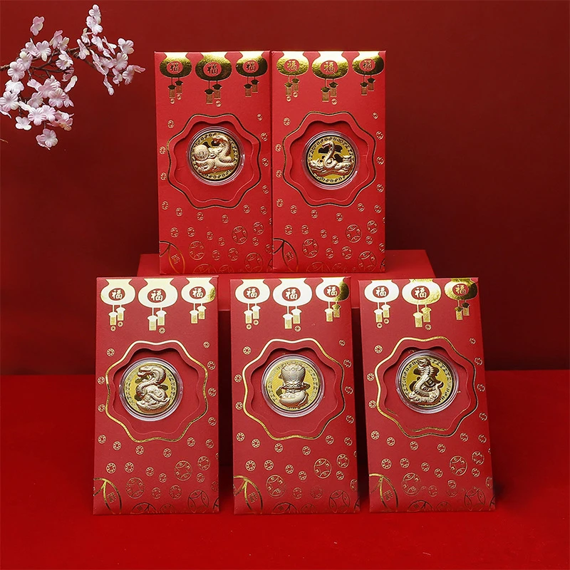 Comprar Moneda conmemorativa de lámina dorada de primavera de serpiente, sobre rojo, Festival de Primavera chino, bolsillos para dinero de la suerte, regalos de Año Nuevo, 2025