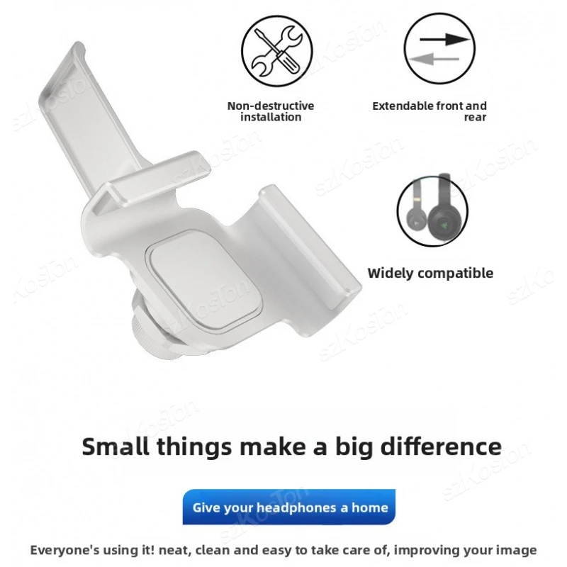 2.Protección de silicona suave A diferencia de otros soportes con bordes afilados que pueden dañar sus auriculares, este soporte cuenta con una abrazadera suave cubierta de silicona para asegurar suavemente sus auriculares sin causar rayones ni desgaste en la diadema.Szkoston