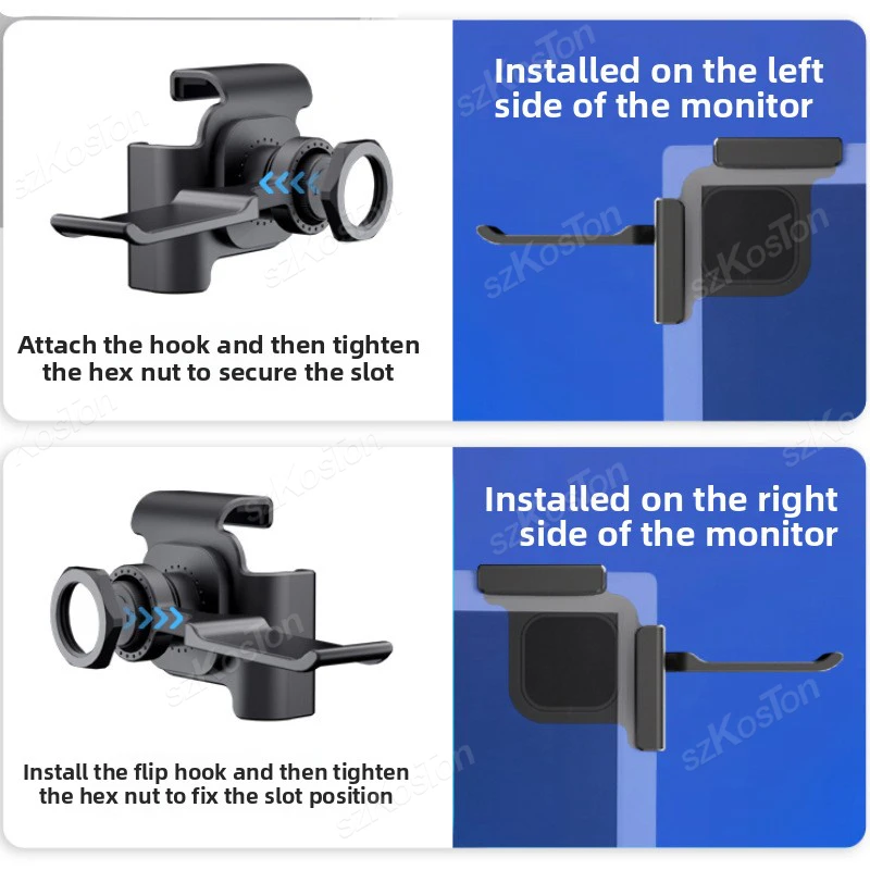 1.Diseño ajustable y que ahorra espacio Monte fácilmente sus auriculares o auriculares para juegos en el lado izquierdo o derecho del monitor de su computadora con este soporte para auriculares que ahorra espacio.La abrazadera ajustable se adapta a espesores de monitores de 0,2 a 0,7 pulgadas, lo que ayuda a reducir el desorden del escritorio y al mismo tiempo mantiene organizado su espacio de trabajo.